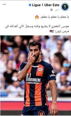 نشرت صفحة الدوري الفرنسي صورا للنجم الأردني موسى التعمري، معلقة عليها باللغة العربية واللهجة الأردنية، بعد أن افتتح التعمري رصيده التهديفي أمام ليون بهدفين، في المواجهة التي جمعت فريقه مونبلييه، لحساب الجولة الثانية من الدوري الفرنسي.