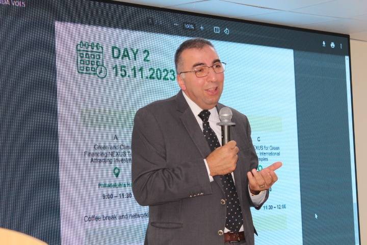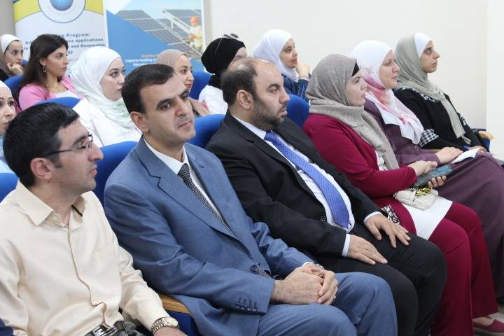 بينا تولت الدكتورة ولاء الصمادي مديرة متكب المشاريع والبحث العلمي في الكلية عرافة الحفل التي استعرضت الاهداف من هذا المشروع للمساهمة في تقوية وتعزيز المهارات والمعرفة للمختصين والمنظمات الفاعلة في المجالات ذات الأولوية باستخدام نهج رابطة المياه والغذاء والطاقة للتنمية المستدامة.