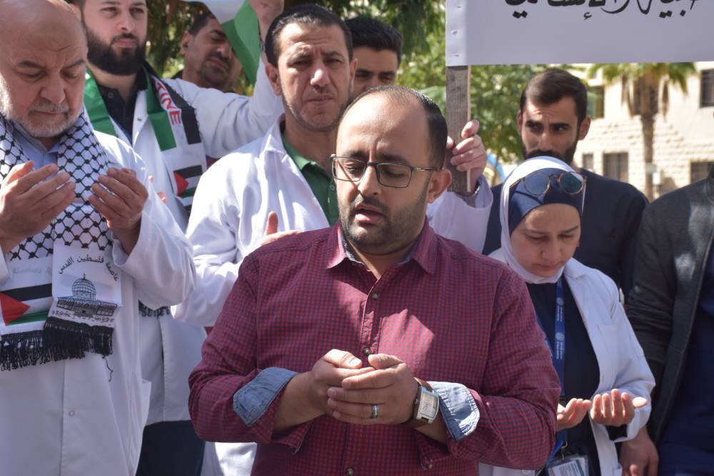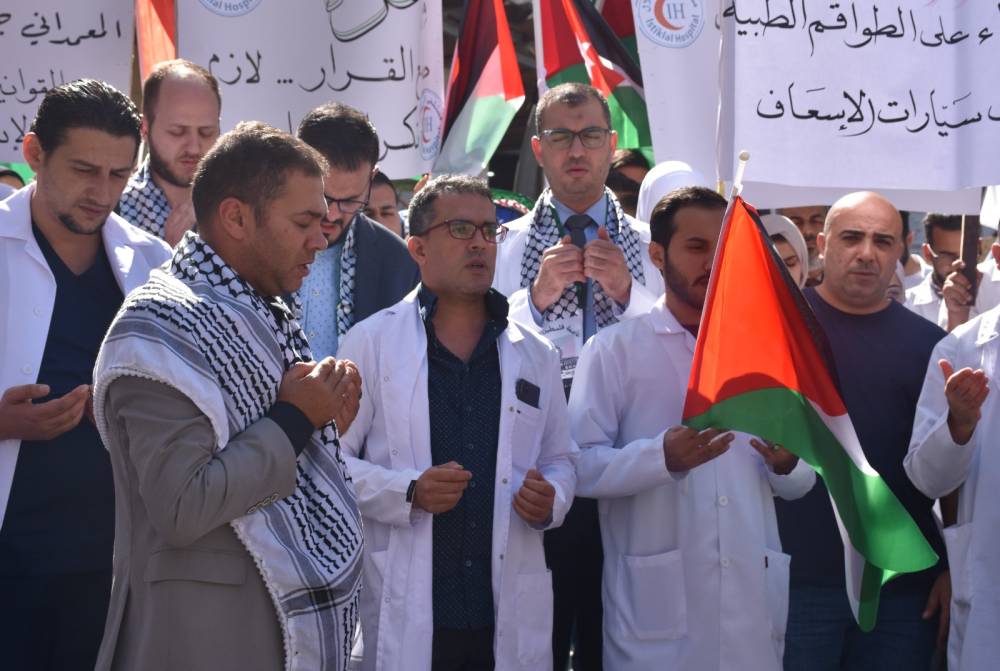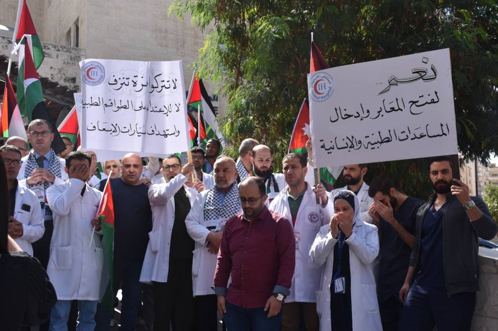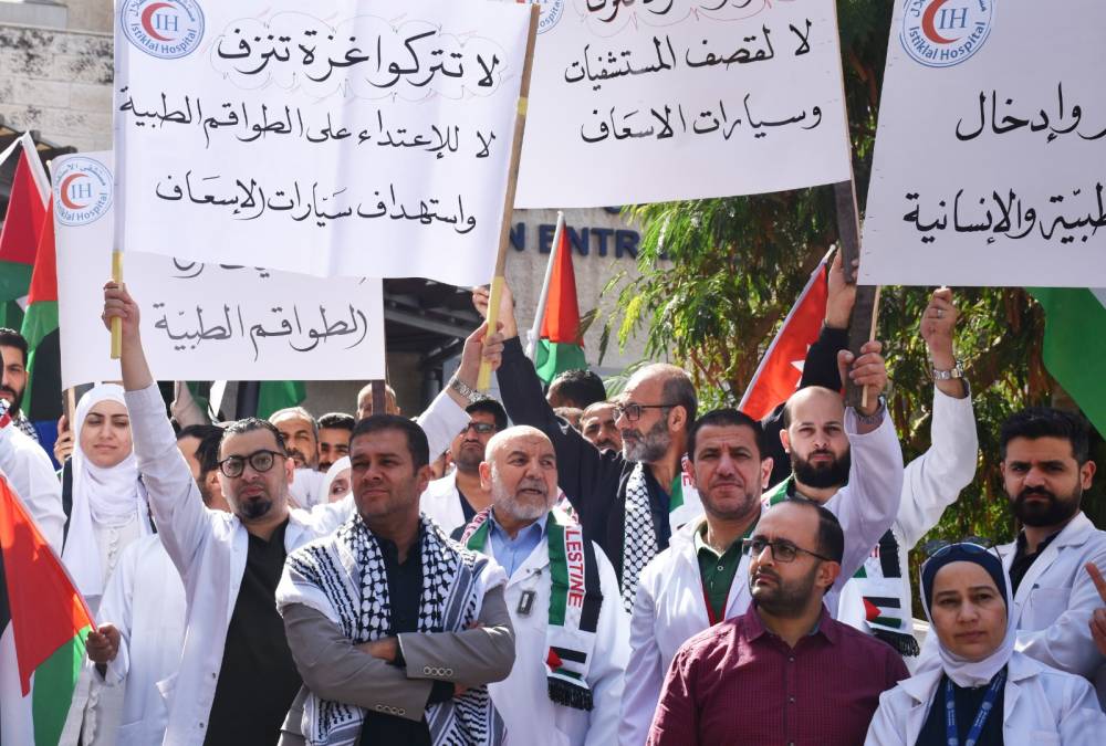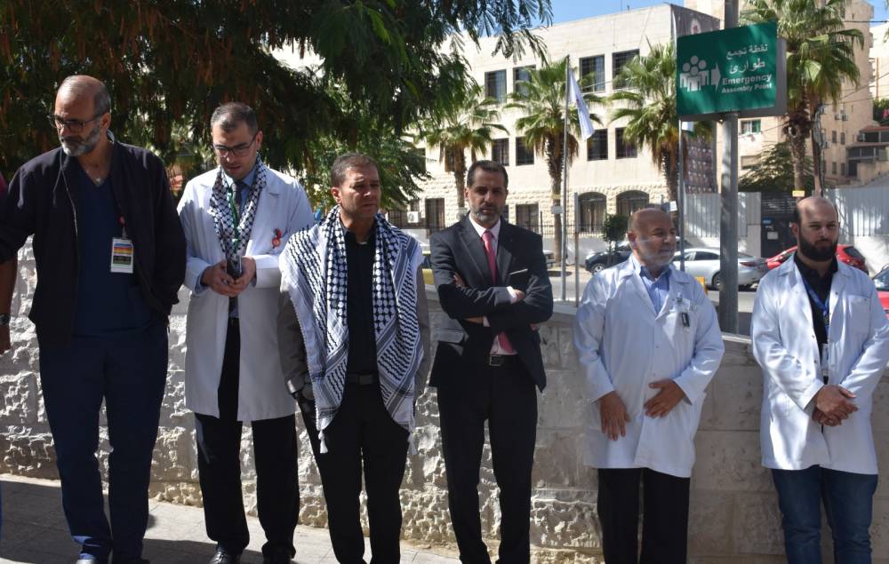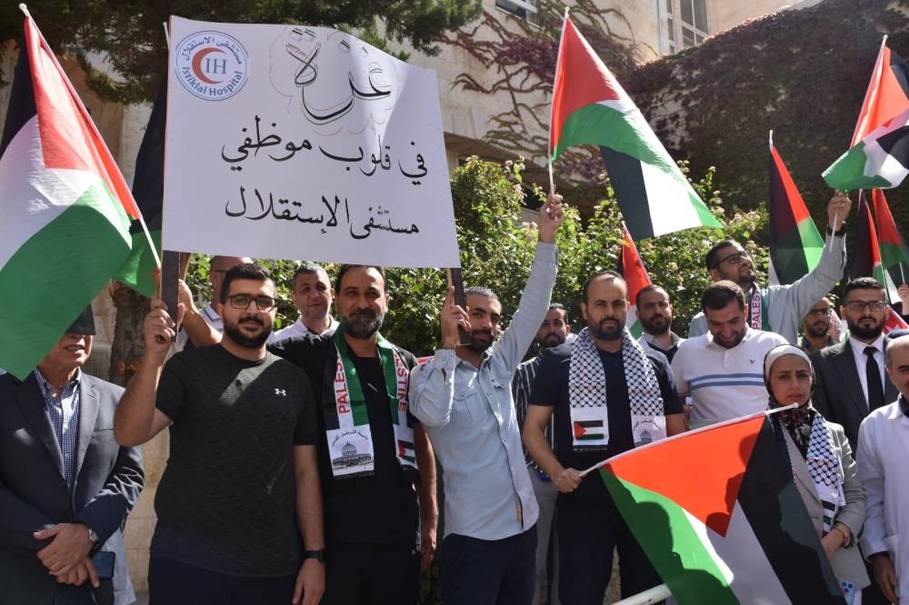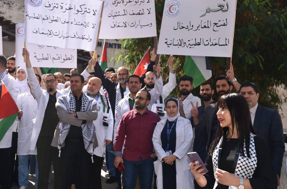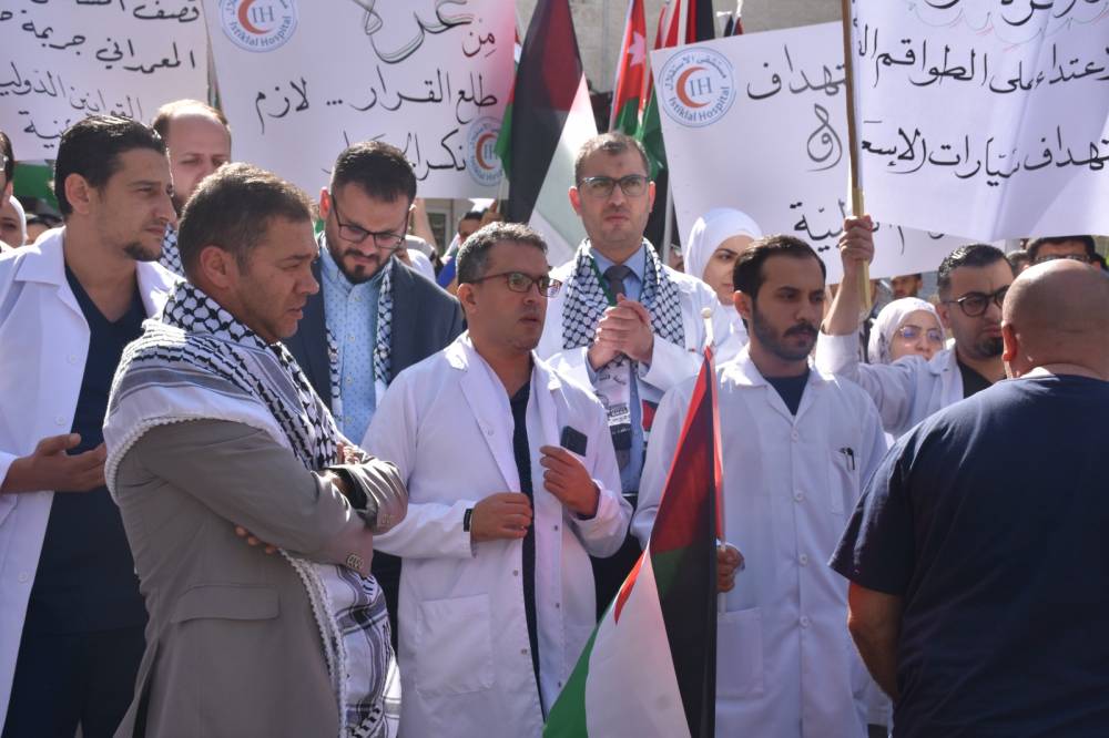 وتأتي هذه الوقفة التضامنية تلبية للدعوة الصادرة عن نقابة الاطباء الاردنية والموجهة لجمعية المستشفيات الخاصة والتي تدعو جميع المستشفيات الخاصة للوقوف امام المستشفيات دعما للشعب الفلسطيني الذي يتعرض للعدوان الصهيوني في قطاع غزة وانتصارا للأطباء وجميع أعضاء وكوادر الهيئة الطبية والمرضى والشهداء.