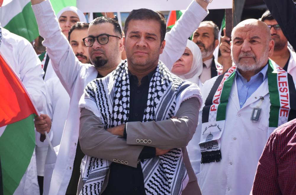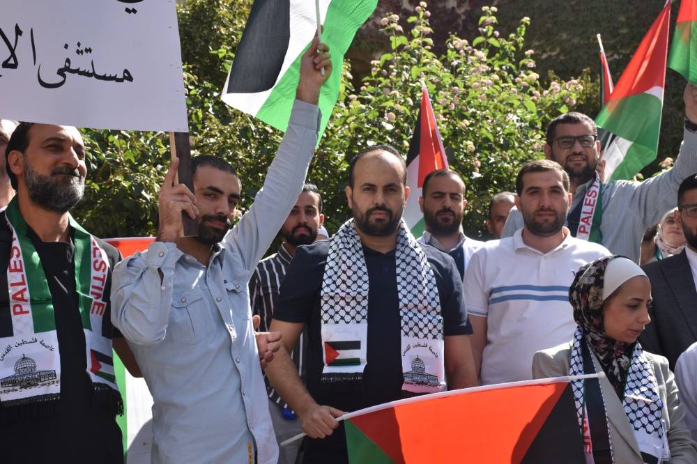 أخبار البلد- نظم مستشىفى الاستقلال وقفة تضامنية اليوم الخميس دعما للأشقاء الفلسطينيين وتنديدا بفاجعة مستشفى المعمداني الذي راح ضحيتها المئات من الشهداء والجرحى من المرضى والنازحين نتيجة القصف الوحشي لقوات الاحتلال الإسرائيلي.