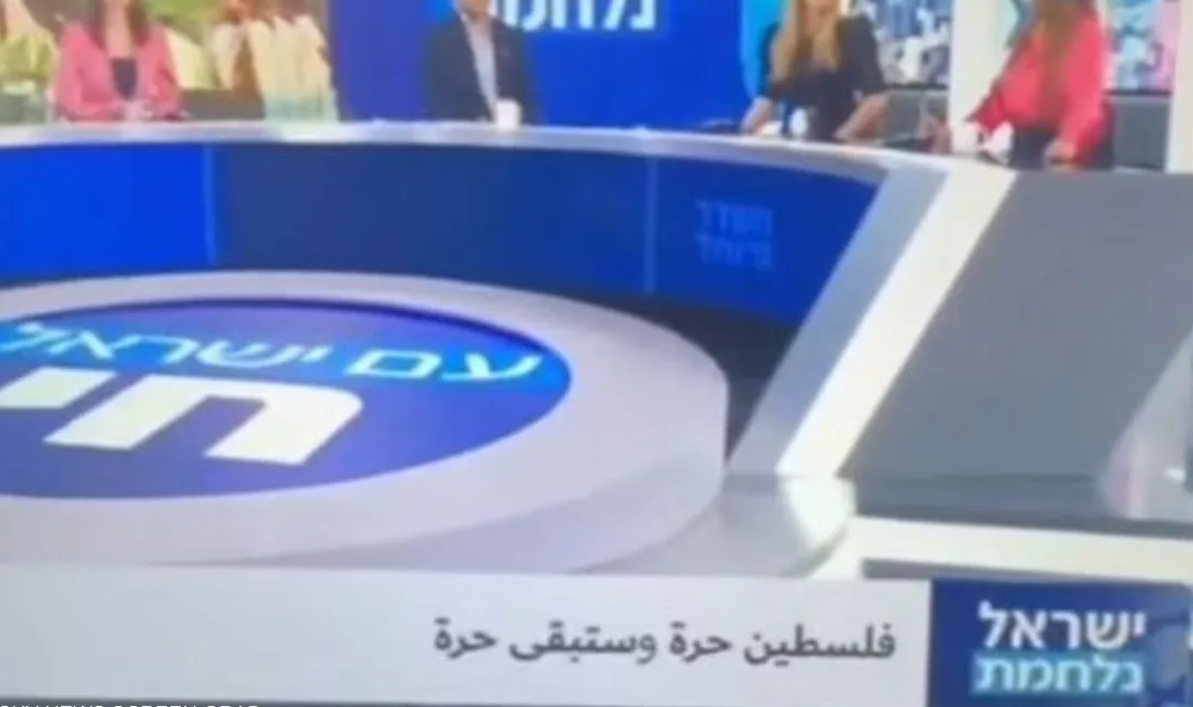 وأثناء البث وبشكل فجائي بدأت عبارات عربية تظهر على شريط القناة الإخباري "فلسطين حرة وستبقى حرة"