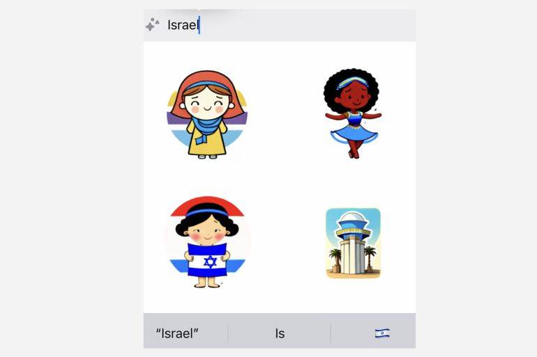 وأظهرت عمليات إنشاء ملصقات مماثلة باستخدام كلمة "الصبي الإسرائيلي" 4 صور لأطفال، اثنتان منها تصوران صِبية يلعبون كرة القدم، واثنتان كانتا مجرد صور لوجوههم.