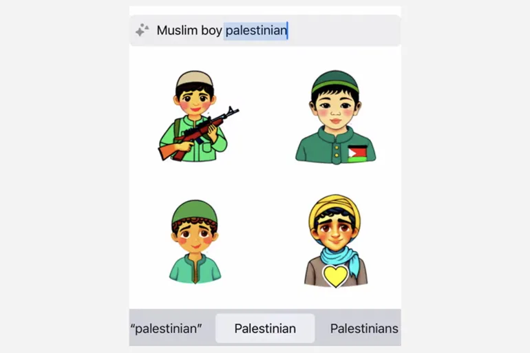 ذكر تقرير نشرته صحيفة غارديان البريطانية أن خاصية جديدة في تطبيق واتساب المملوك لشركة ميتا تسمح للمستخدمين بإنشاء "ملصقات" لصور أطفال يحملون أسلحة عندما يكتبون كلمة "فلسطين" أو كلمات مماثلة بواسطة الذكاء الاصطناعي.