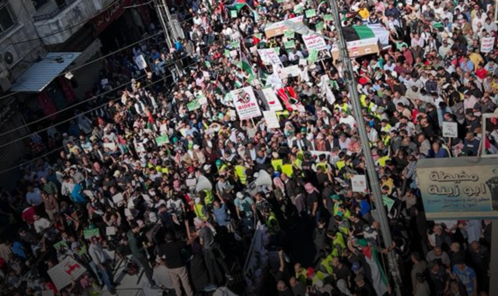 ينفذ أردنيون، الجمعة، مسيرة تضامنية في وسط البلد بالعاصمة عمان، نصرة للمقاومة الفلسطينية دعما لأهالي قطاع غزة الذين لا يزالون تحت قصف الاحتلال الإسرائيلي، وسط الحصار الكامل.