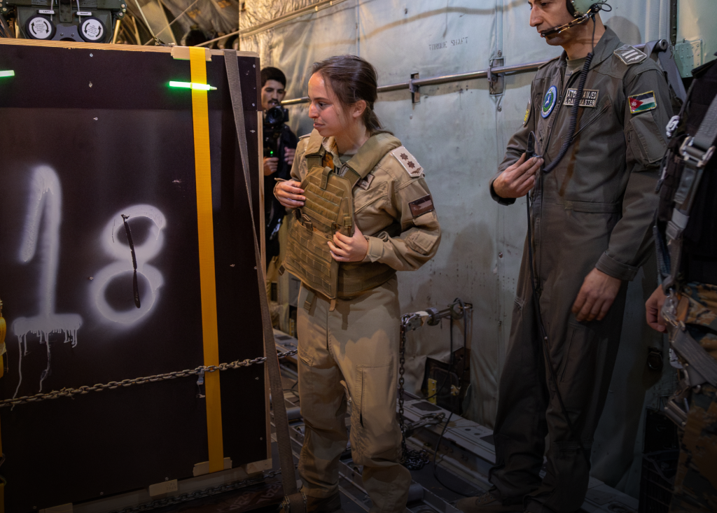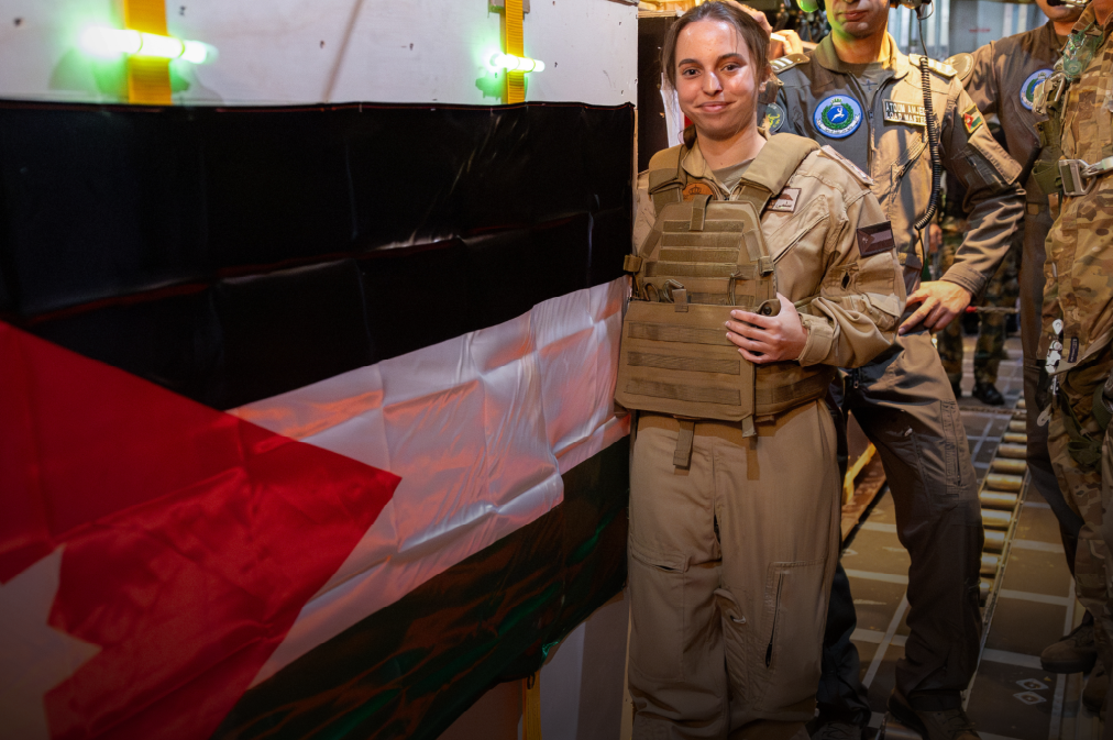 شاركت سمو الأميرة سلمى بنت عبدالله الثاني، التي تحمل رتبة ملازم أول/طيار في سلاح الجو الملكي،عملية إنزال جوي خامسة، لمواد ومستلزمات طبية عاجلة بواسطة مظلات للمستشفى الميداني الأردني/ غزة 76.