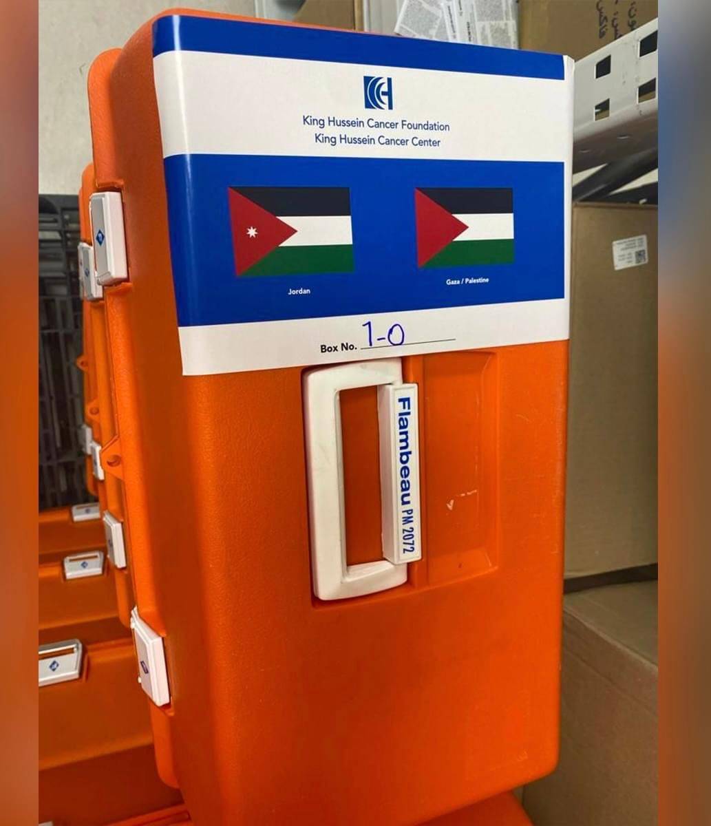 أرسل مركز الحسين للسرطان وبالتعاون مع القوات المسلحة الشحنة الأولى من الأدوية والمعدّات الطبيّة إلى قطاع غزة ضمن جهوده من أجل الوقوف إلى جانب أهالي غزة.