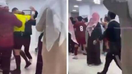 ووثق مقطع فيديو متداول، عبر منصة "إكس"، المشاجرة العنيفة التي نشبت بين لاعبي النصر والحكام