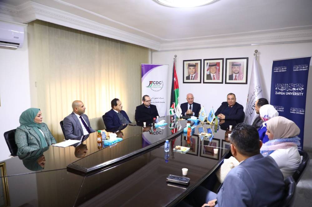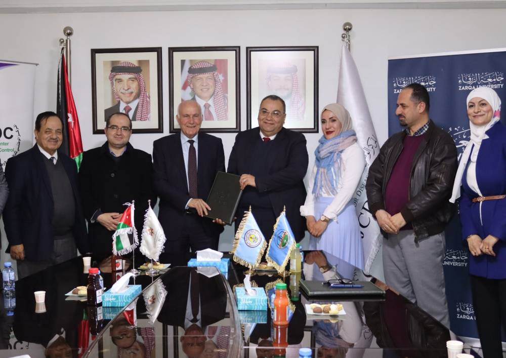 ووقع عن المركز رئيسه الدكتور عادل البلبيسي بحضور الأمين العام الدكتور محمد اليحيى، وعن الجامعة رئيسها الأستاذ الدكتور نضال الرمحي بحضور عميد البحث العلمي الأستاذ الدكتور خالد قواسمي وعميد كلية العلوم الطبية المساندة الدكتورة كوثر العماوي ورئيس قسم التحاليل الطبية في كلية العلوم الطبية المساندة بجامعة الزرقاء الدكتورة رابعة العثامنة.