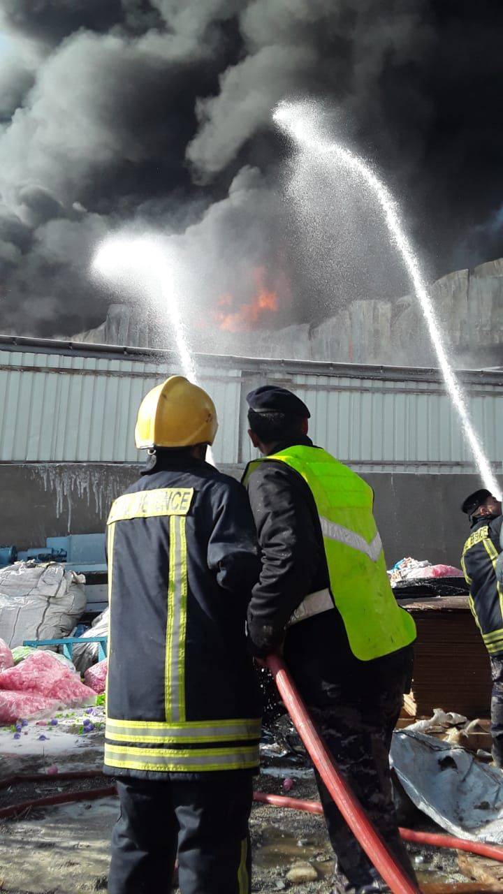 - الدفاع المدني يبذل جهوداً كبيرة مكنته من اخماد حريق ضخم أتى على مصنع للبلاستيك