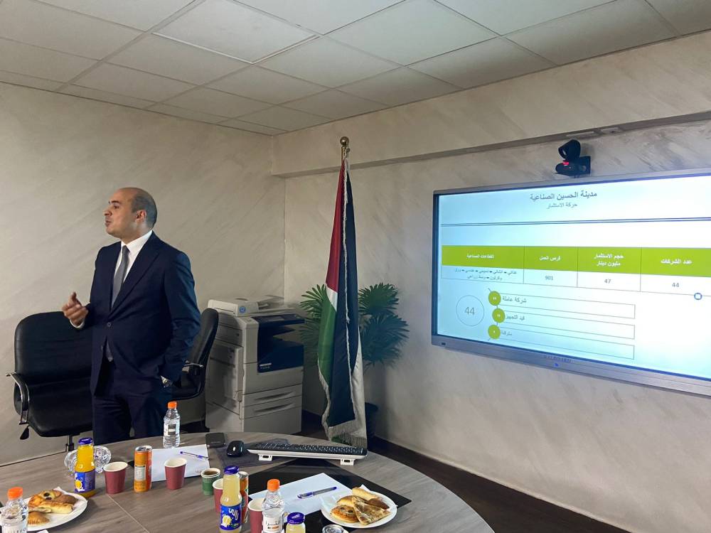 وكان الوفد الضيف قد استمع بإيجاز عن شركة المدن الصناعية الاردنية قدمه مدير الترويج السيد كي مروان بحضور نائب مدير المدن الصناعية عدي عبيدات ومساعد المدير العام السيد معتز نمروقه ومدير مدينة الحسين الصناعية عبدالحليم القراله استعرض خلاله واقع المدينة الاستثماري وفرص الاستثمار فيها .