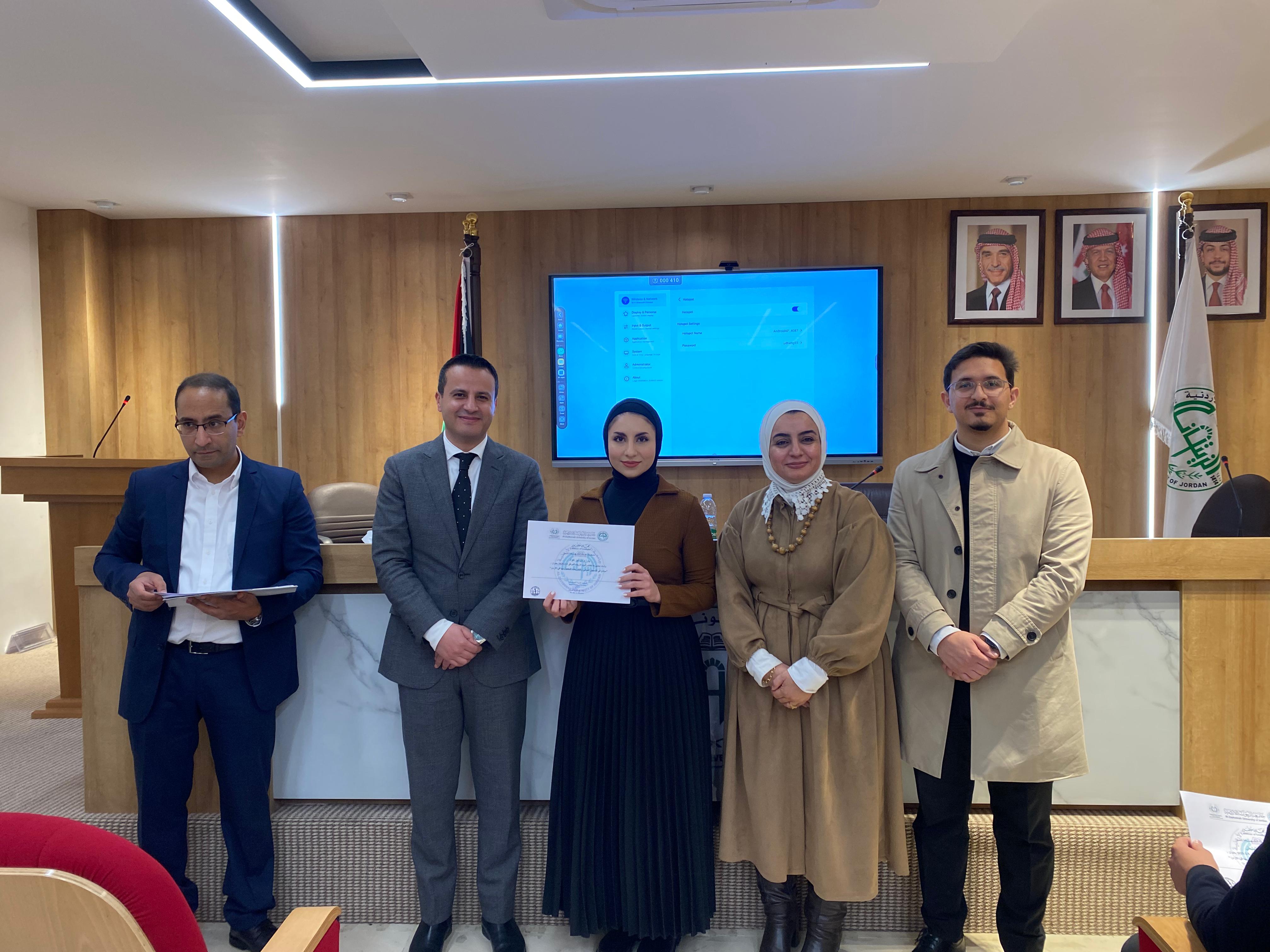 عقدت كلية الصيدلة في جامعة الزيتونة الأردنية دورة تدريبية بعنوان "مبادئ التسجيل الدوائي والتشريعات المعمول بها في الأردن"، قدمتها الصيدلانية إسراء الزعبي، مستشارة المدير العام لشؤون الدواء في المؤسسة العامة للغذاء والدواء، بحضور الدكتور علاء الحسبان، عميد الكلية، ونائب العميد الدكتور محمد الوحش، ومنسق الدورة الدكتور نمر الخطيب، وعددٍ من طلبة الكلية.