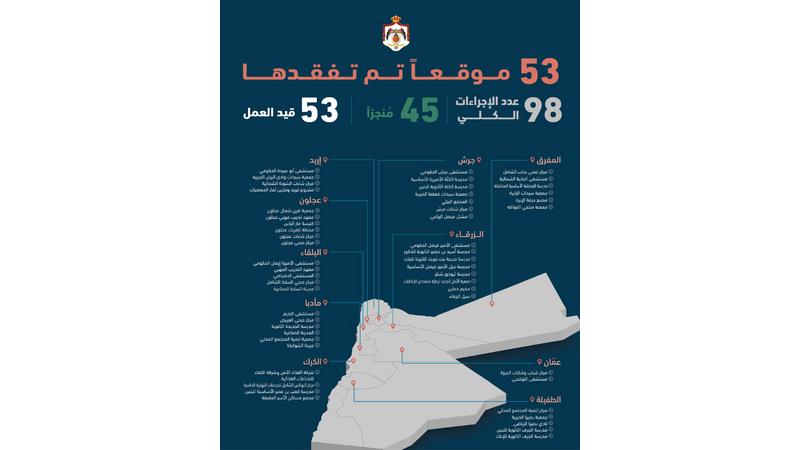 وبحسب التقرير الذي نشرته رئاسة الوزراء على منصة "اكس"، فقد زار رئيس الوزراء 53 موقعا في 10 محافظات خلال الفترة من 25 أيلول 2024 وحتى 8 شباط 2025، نتج عنها 98 إجراء انجز منها 45، فيما زال 53 منها قيد الإنجاز.