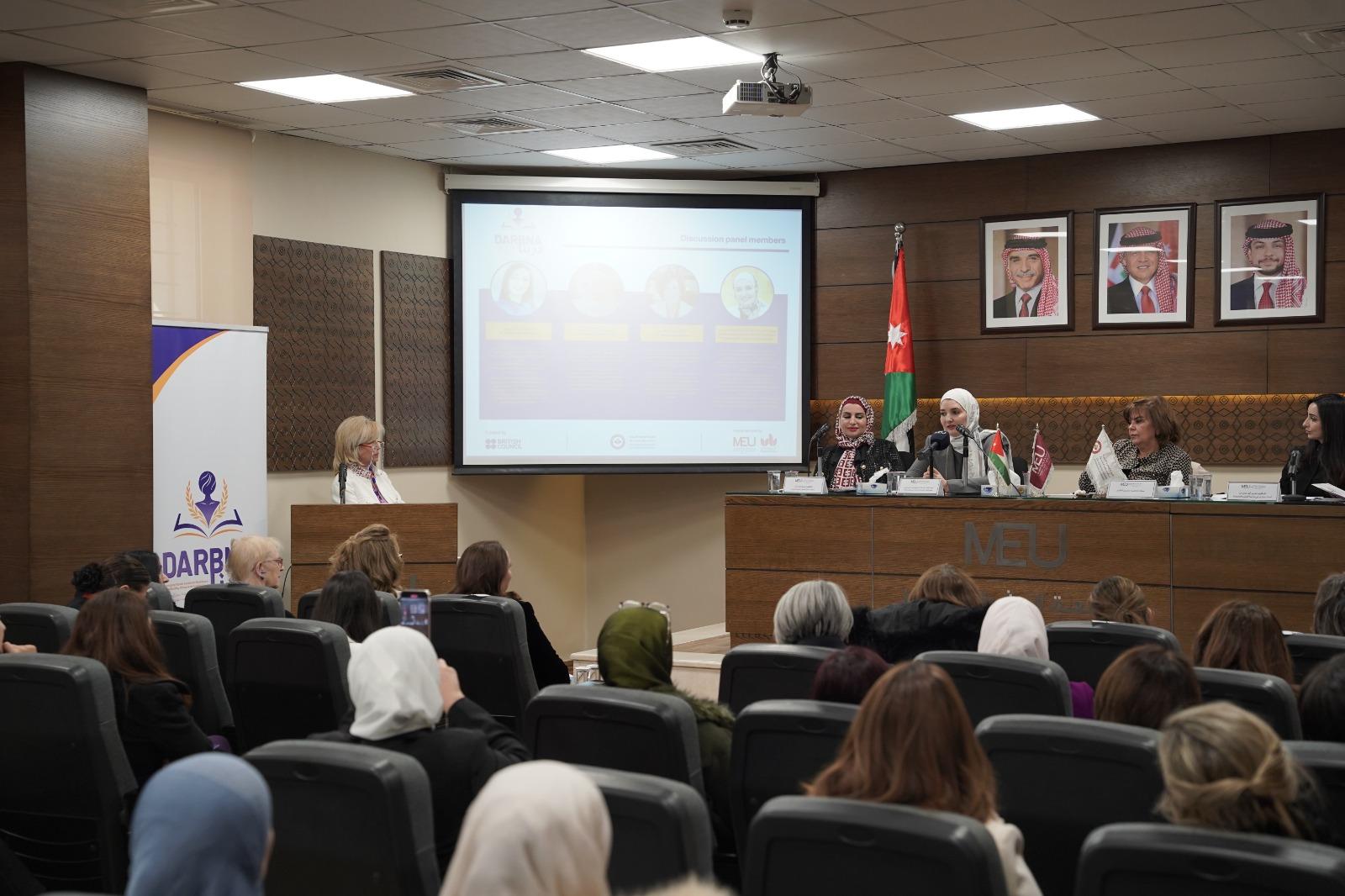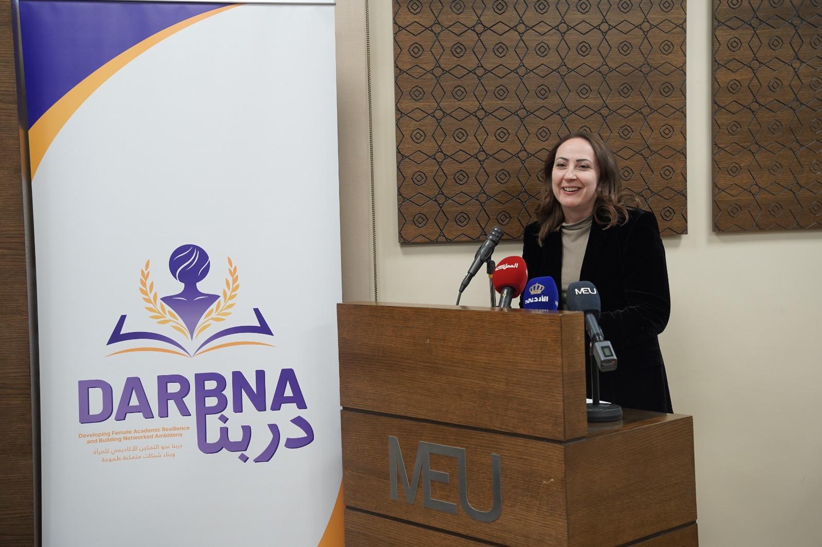 أطلقت جامعة الشرق الأوسط بالشراكة مع جامعة بيدفورشير، مشروع "دربنا" الممول من المجلس الثقافي البريطاني، تحت رعاية الأمينة العامة للجنة الوطنية الأردنية لشؤون المرأة، معالي المهندسة مها علي، وبحضور رئيسة الجامعة الأستاذة الدكتورة سلام المحادين، ورئيسة ملتقى البرلمانيات الأردنيات النائب الأستاذة الدكتورة تمارا ناصر الدين، وممثلة جامعة بيدفورشير البريطانية الدكتورة كرستينا لاند، وعدد من الشخصيات الأكاديمية وذات الاختصاص.