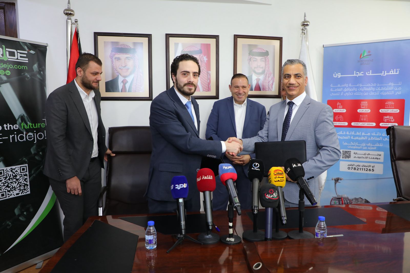 حيث وقع عن "المجموعة الأردنية للمناطق الحرة والمناطق التنموية ” عطوفة السيد محمد الواكد المدير العام لشركة المجموعة الأردنية للمناطق الحرة والمناطق التنموية بالوكالة ، بحضور رئيس مجلس الإدارة معالي المهندس صخر العجلوني فيما وقع عن "E-Ride” الكابتن الطيار حسام داود، الرئيس التنفيذي للشركة.