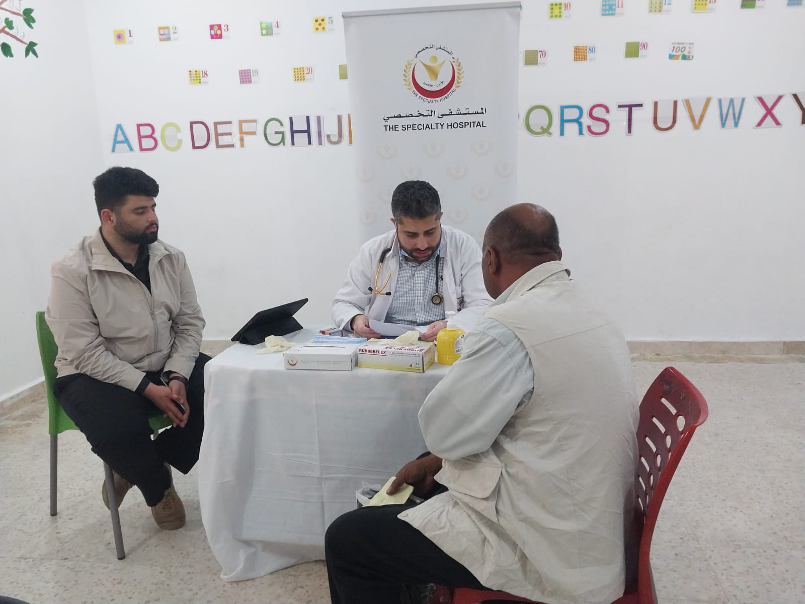 وشارك في الفعالية فريق طبي متكامل من المستشفى التخصصي، ضم عدداً من الأطباء من مختلف الاختصاصات وشملت: الباطنية، العظام، المسالك البولية، النسائية، طب الأطفال، الأنف والأذن والحنجرة، والجراحة العامة، إلى جانب كادر تمريضي وصيدلاني، وأخصائيات تغذية وصحة نفسية.
