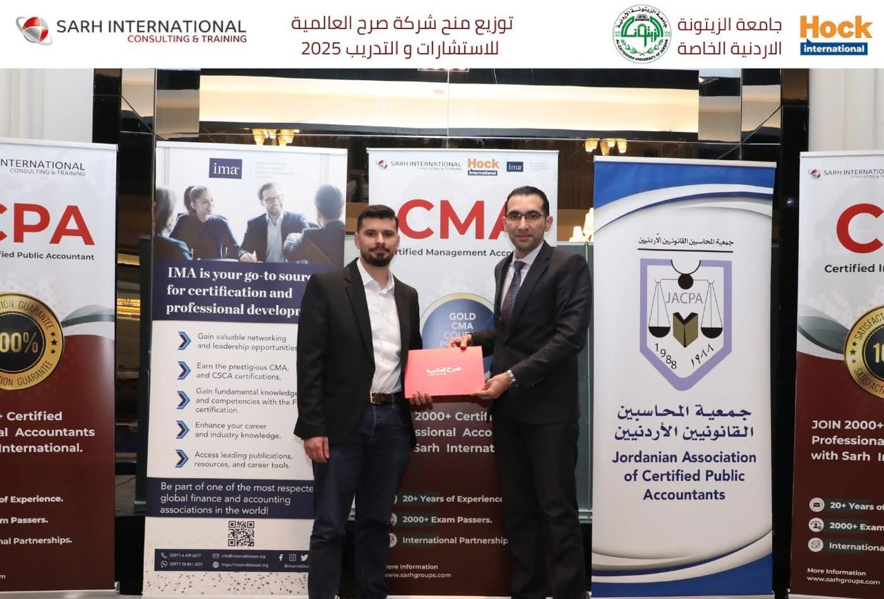حصل مجموعة من الطلبة المتفوقين في قسم المحاسبة بكلية الأعمال في جامعة الزيتونة الأردنية على خمس منح تدريبية مميزة مقدمة من شركة صرح العالمية للاستشارات والتدريب، الرائدة في مجال التدريب المهني للمحاسبين والمدققين.