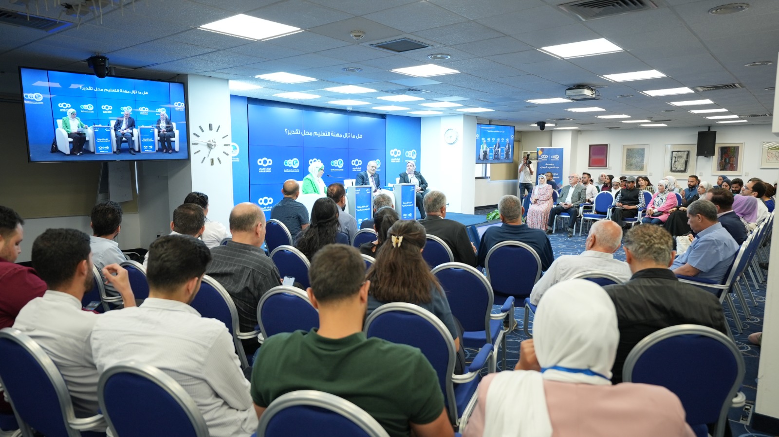 وشارك في الحوارية الأستاذ الدكتور هاني الضمور، والأستاذة عبير النعيمي الحائزة على جائزة الملكة رانيا للمدير المتميز، وأدارت الحوار مع الجمهور الأستاذة ماجدة العتوم.