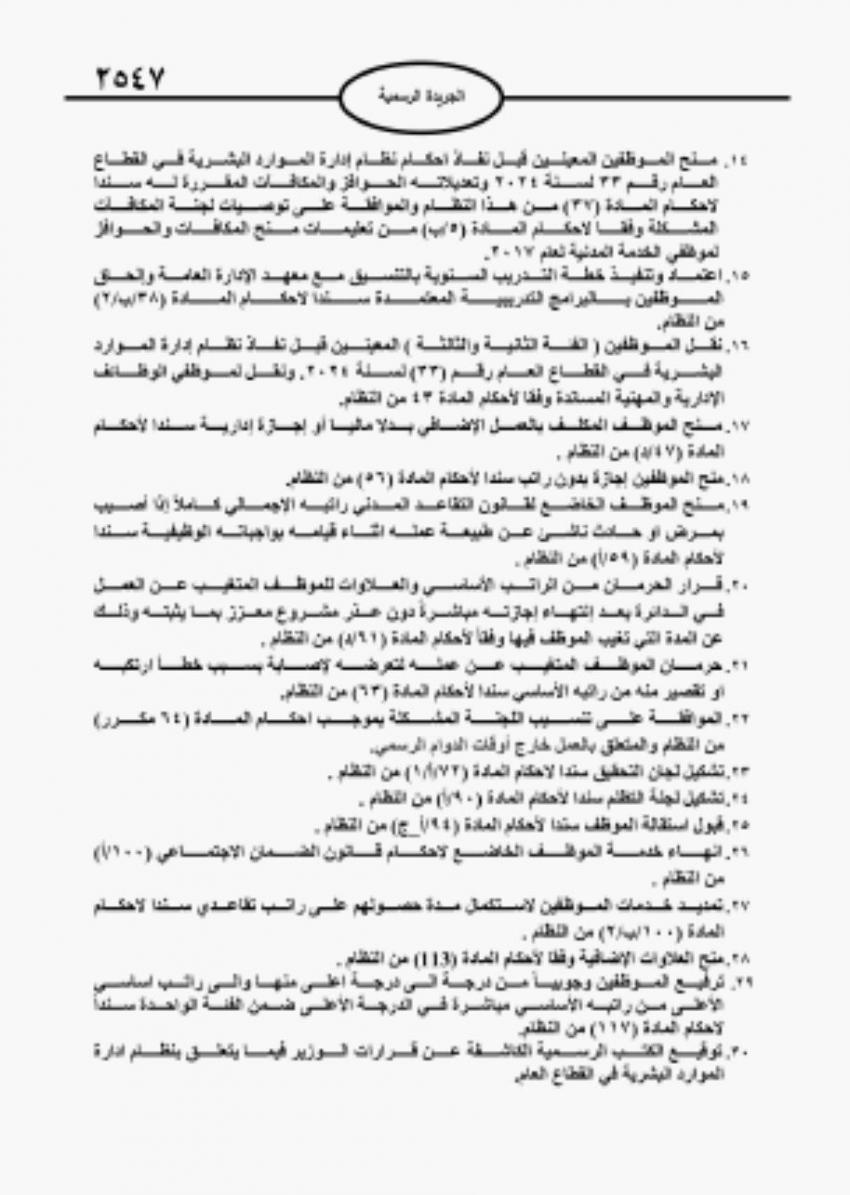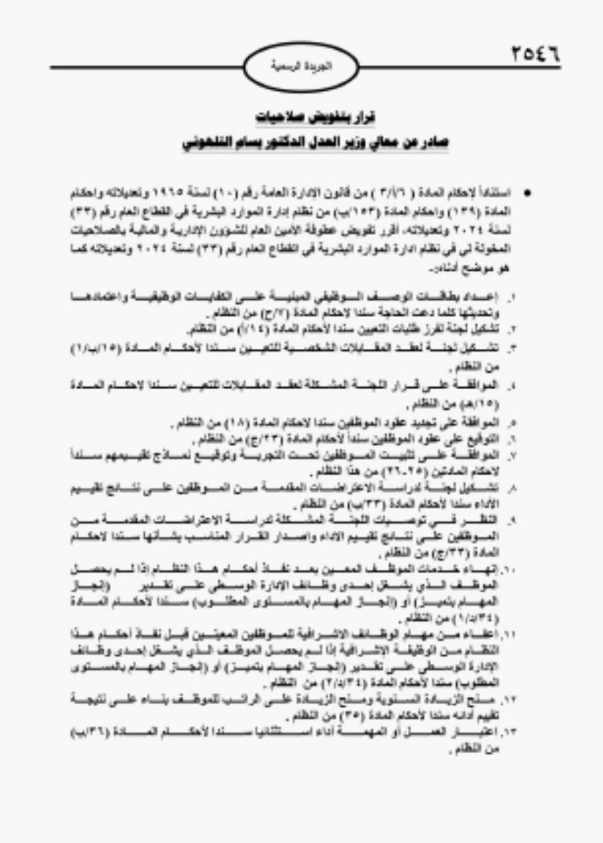 كما نص القرار على تفويض صلاحيات تتعلق بتقييم الأداء السنوي، والمساءلة التأديبية، والنقل والانتداب، واعتماد الإجازات المرضية والطارئة.