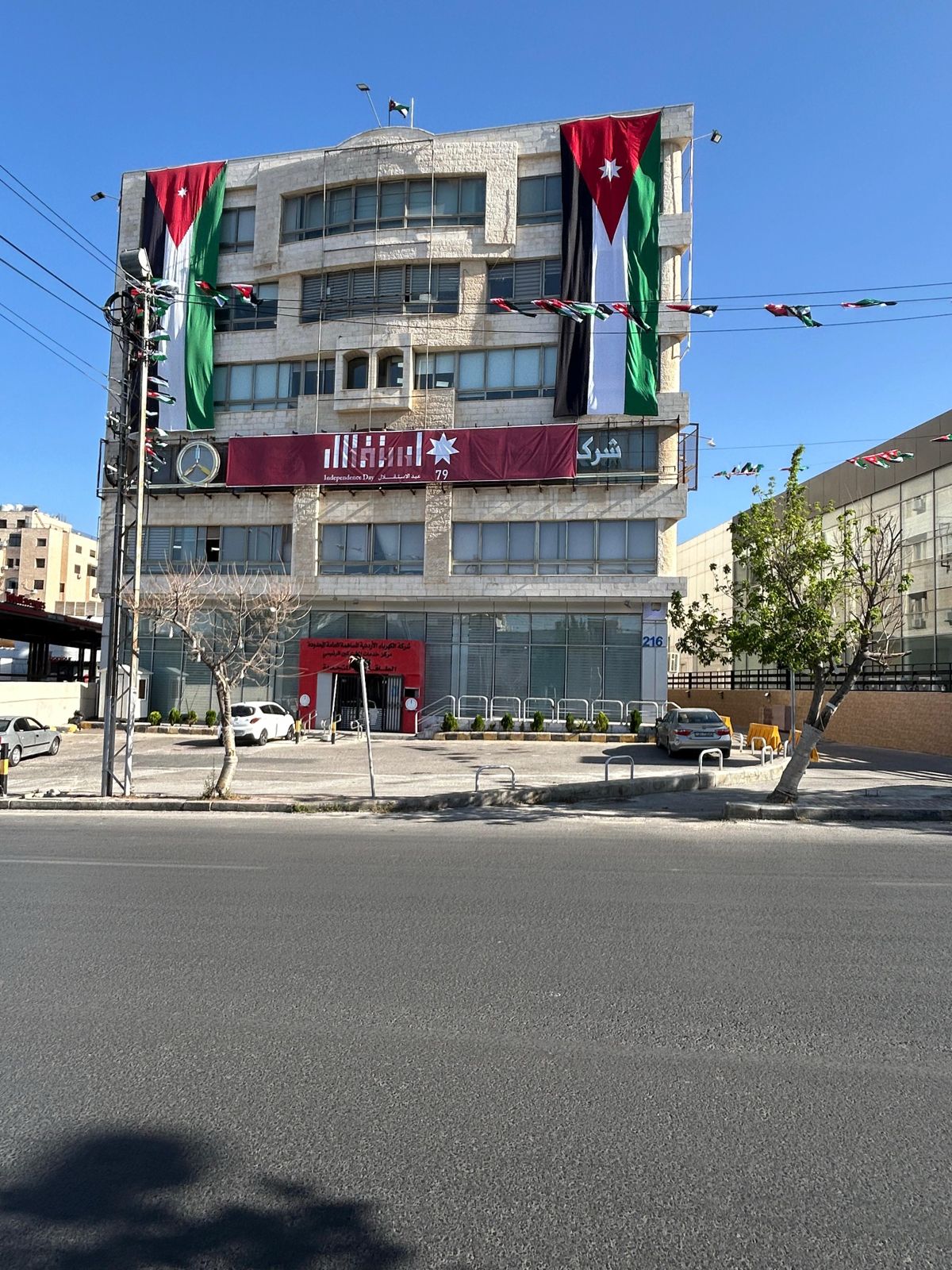 يتقدم رئيس مجلس إدارة شركة الكهرباء الأردنية المساهمة العامة المحدودة، المهندس عثمان بدير، وأعضاء المجلس، والمدير العام المهندس حسن عبدالله، وكافة موظفي الشركة، بأسمى آيات التهنئة والتبريك إلى مقام حضرة صاحب الجلالة الهاشمية الملك عبدالله الثاني ابن الحسين المعظم، وسمو ولي العهد الأمير الحسين بن عبدالله الثاني، بمناسبة عيد استقلال المملكة الأردنية الهاشمية التاسع والسبعين.