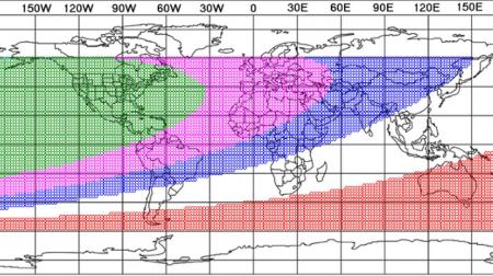 رؤية الهلال ممكنة فقط باستخدام التلسكوب من المناطق الواقعة في اللون الأزرق.