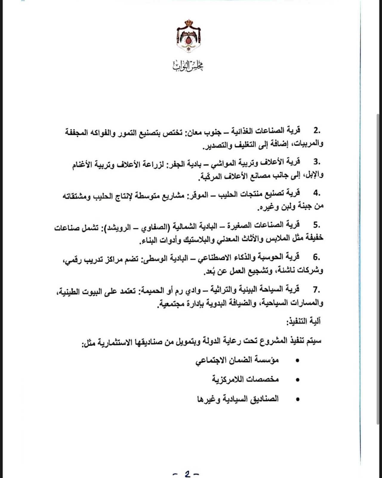 تقدم رئيس كتلة إرادة والوطني الإسلامي في مجلس النواب، النائب الدكتور خميس حسين عطية، بمبادرة وطنية شاملة بعنوان "القرى الإنتاجية”، تهدف إلى التصدي لتحديات الفقر والبطالة والطاقة والأمن الغذائي، من خلال إنشاء مجتمعات إنتاجية متكاملة في مناطق البوادي والمناطق الأقل حظاً في المملكة.