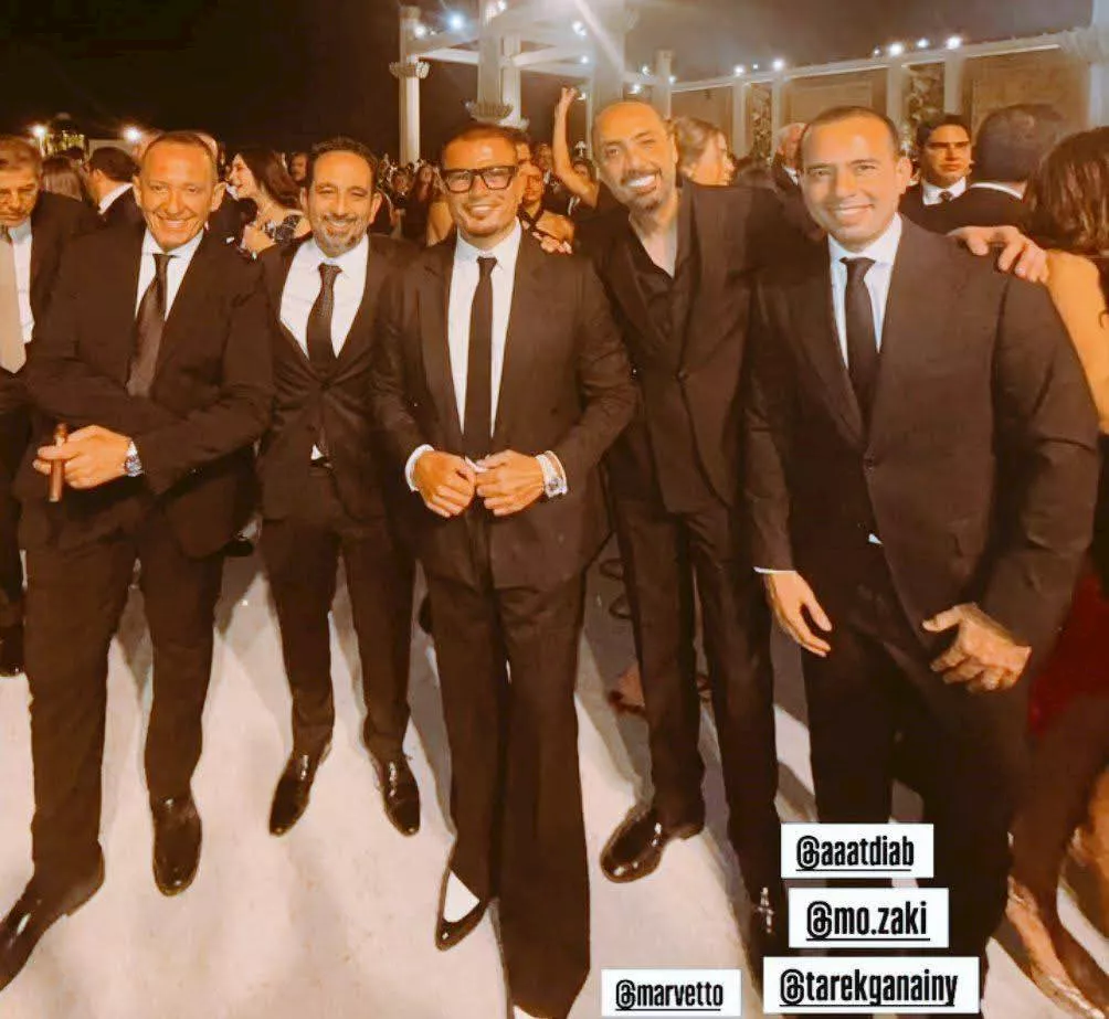وحضر النجم عمرو دياب، حفل الزفاف بصحبة ابنتيه جانا، وكنزي، ونجله عبدالله، كما تواجدت في الحفل والدة أولاده الثلاثة زينة عاشور.