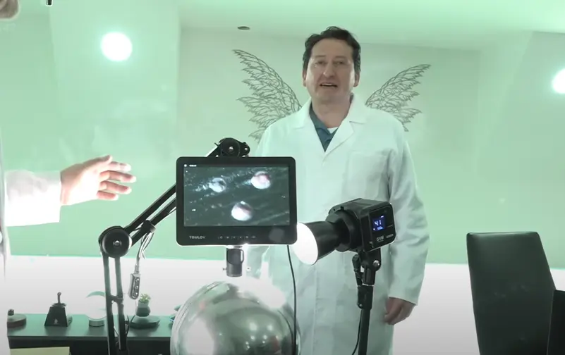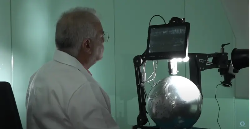 واستُخدم مجهر رقمي مُعدّل على رؤية طبيعية 2000 مرة لرؤية الأسلاك المخفية، والتي تمتد في اتجاهات مختلفة وتتصل بالدبابيس والنقاط النحاسية على سطح الكرة، بما في ذلك شيء يشبه الشريحة الدقيقة.