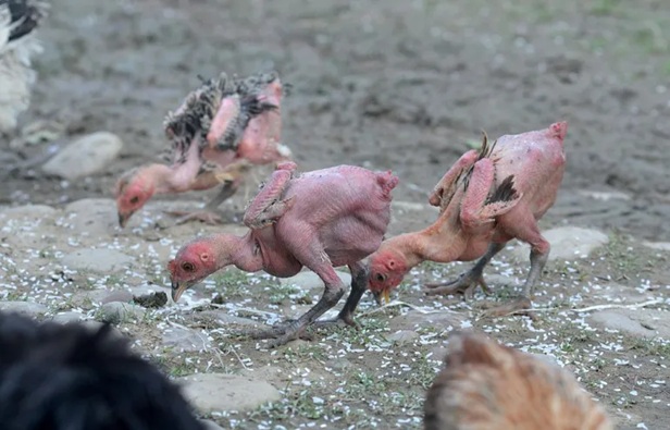 وفي حين تُستخدم أساليب التربية لتطوير سلالات حيوانية معينة، حيث يختار المربون الحيوانات الأكبر حجما والأكثر صحة للتزاوج من أجل إنتاج الأجيال الجديدة، أنتج العلماء قبل أعوام سلالة أثارت استغرابا وتشجيعا من البعض، وغضبا من آخرين، بسبب قيام العلماء بالتلاعب بالدجاج وراثيا ليُنتج بلا ريش، بحجة أنه يصقل كاهله ويحد من سرعة نموه.