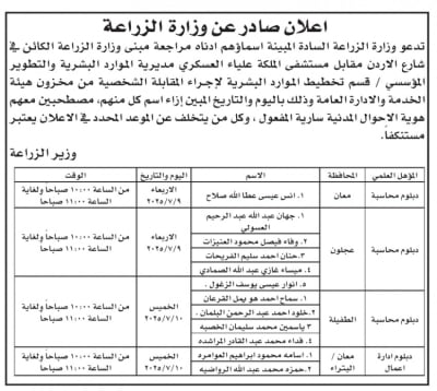 الأردن.. شواغر وظيفية ومدعوون لإجراء المقابلات - أسماء