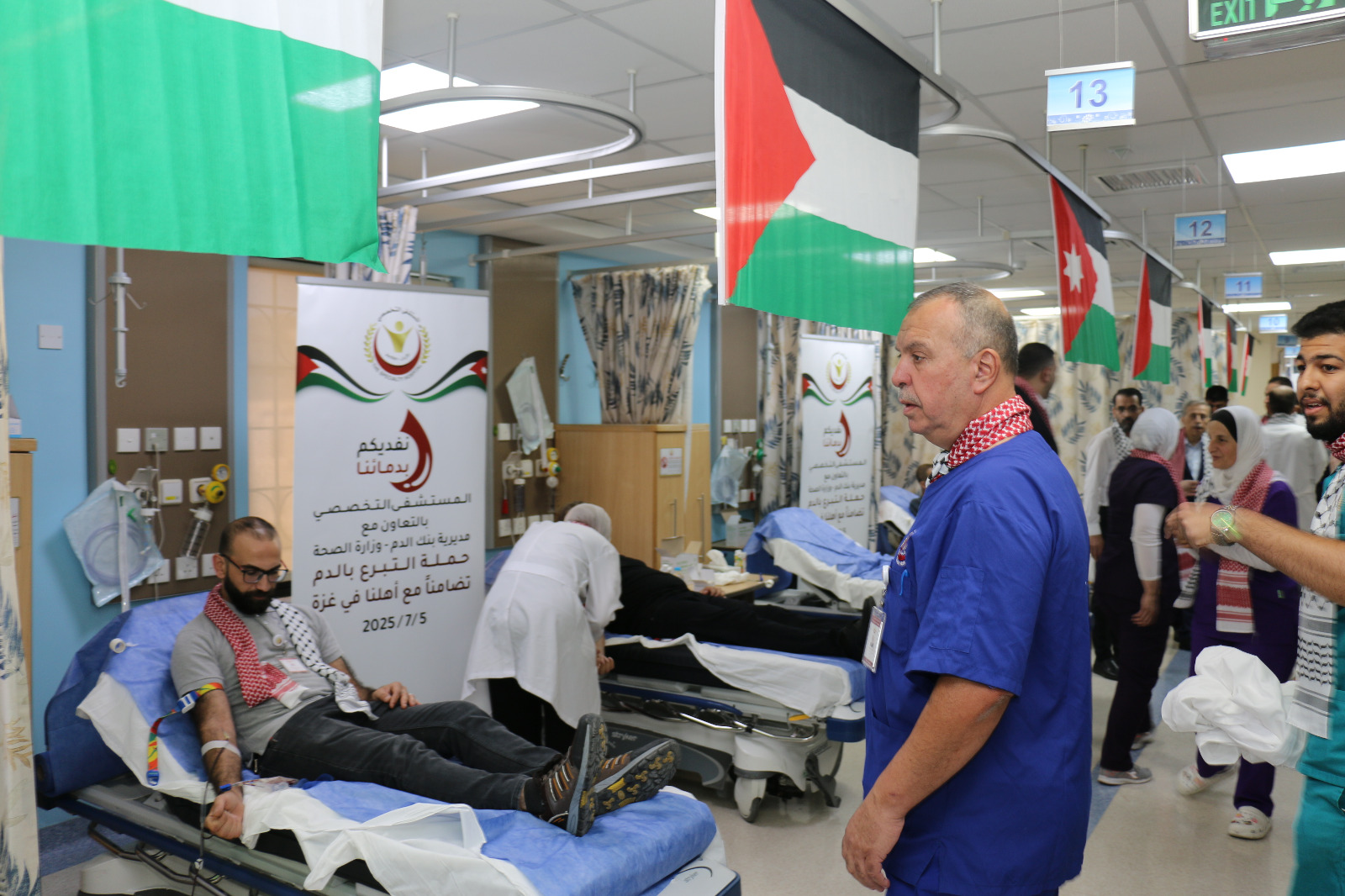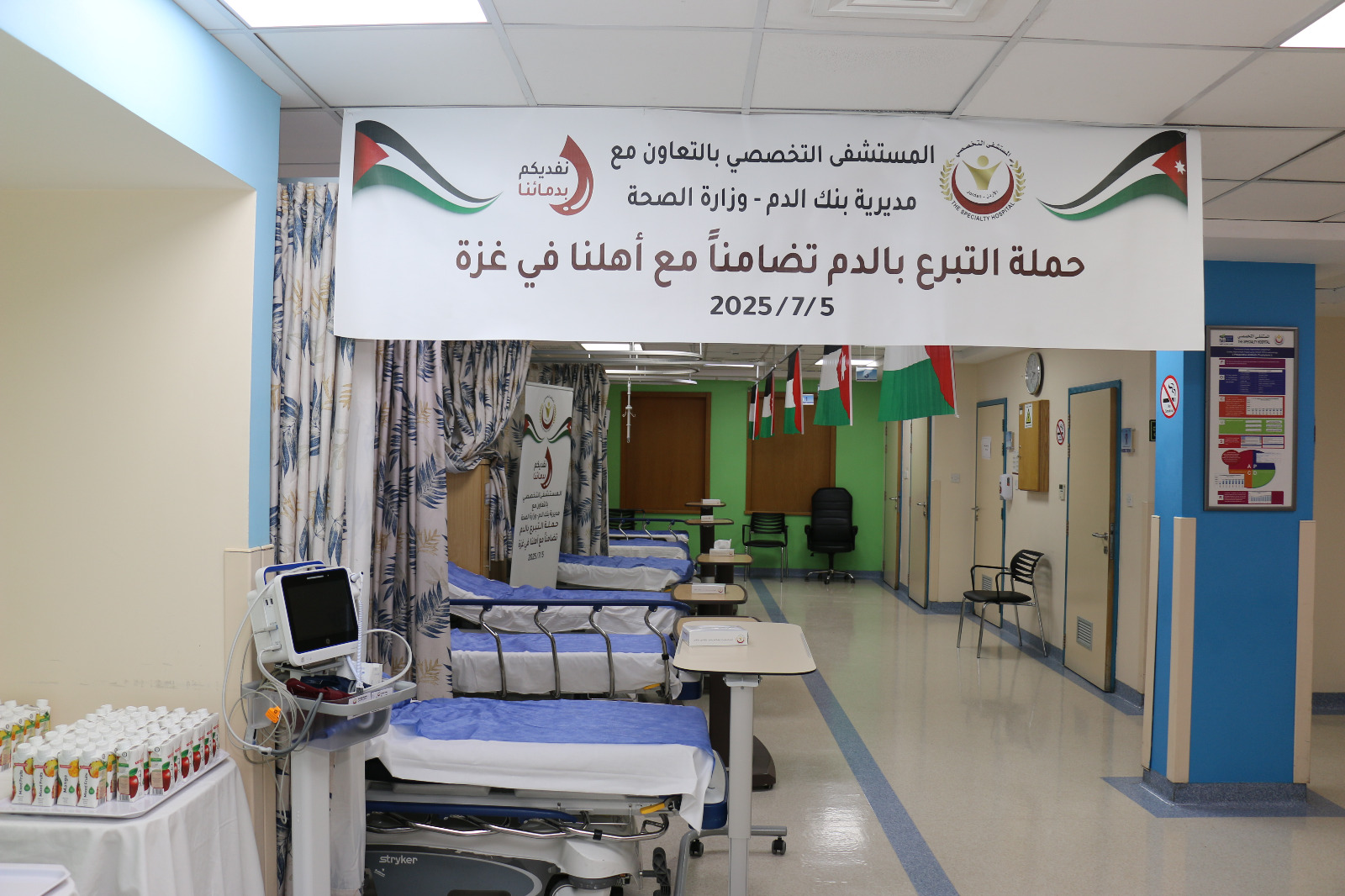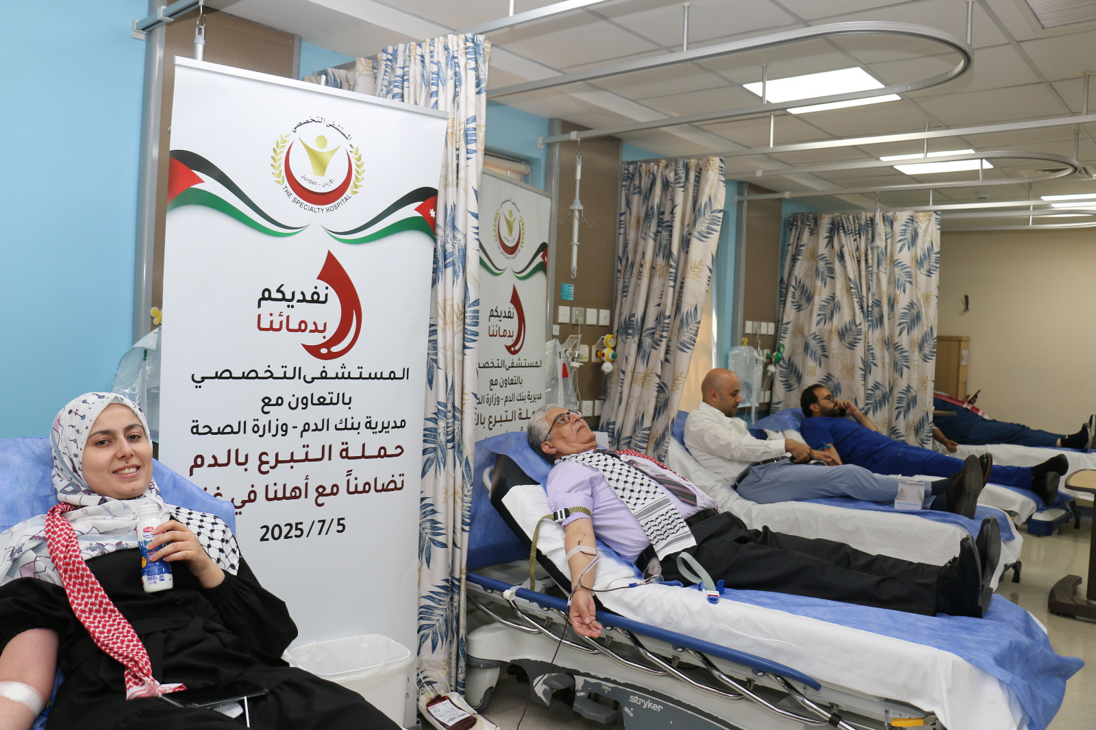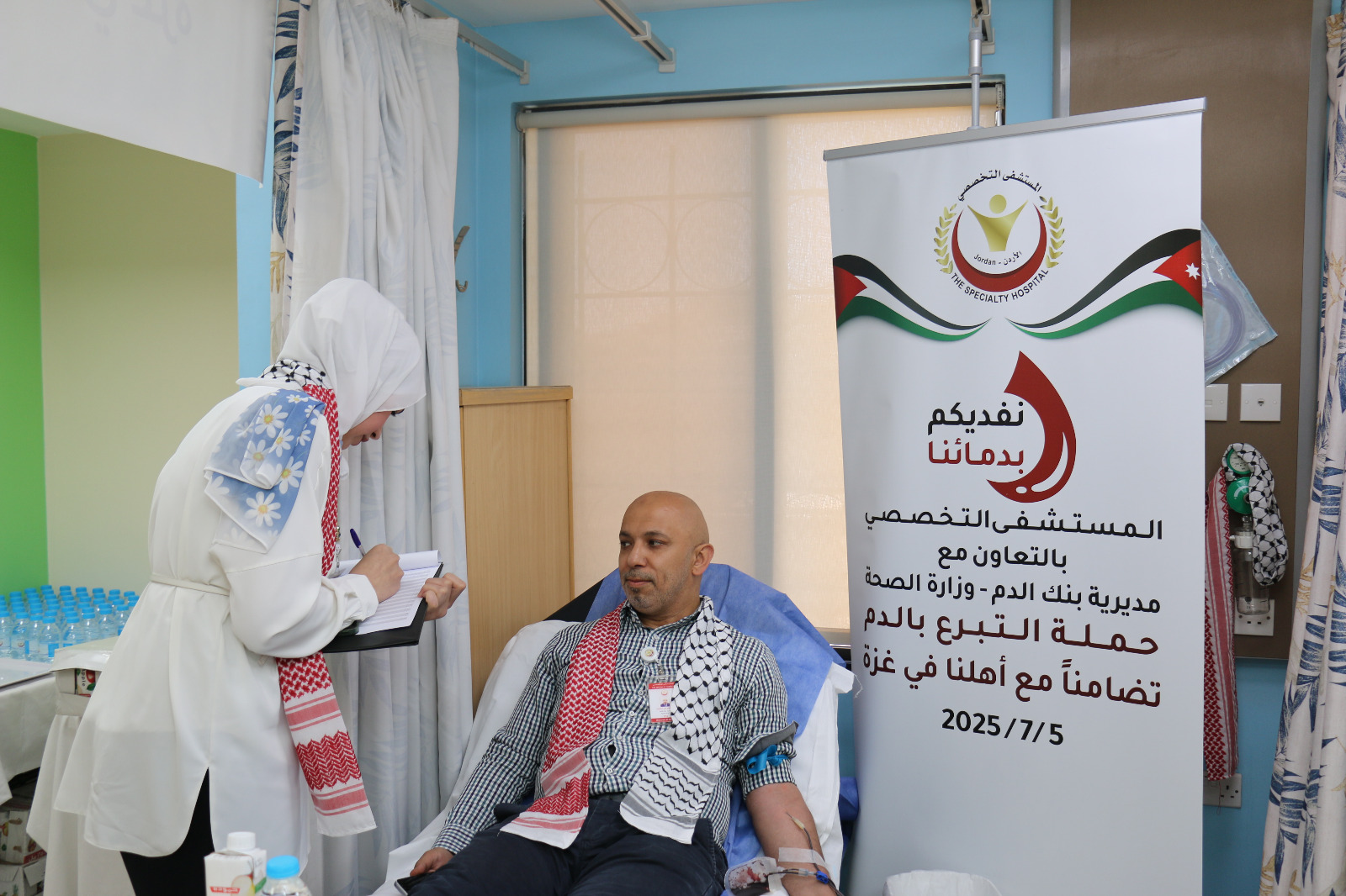 انطلقت في المستشفى التخصصي، امس،، حملة تبرع بالدم تحت شعار «نفديكم بدمائنا»، دعمًا للأهل في قطاع غزة.