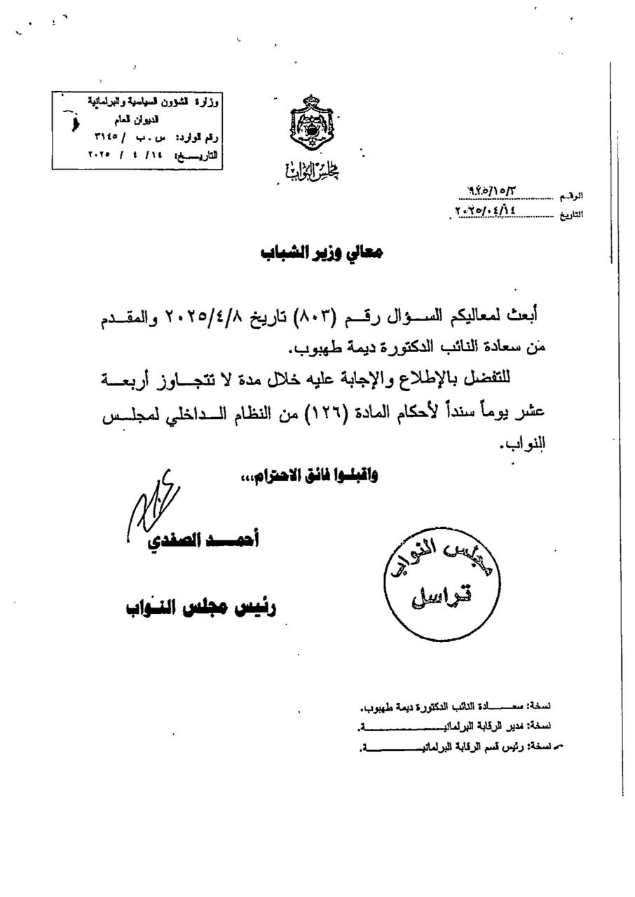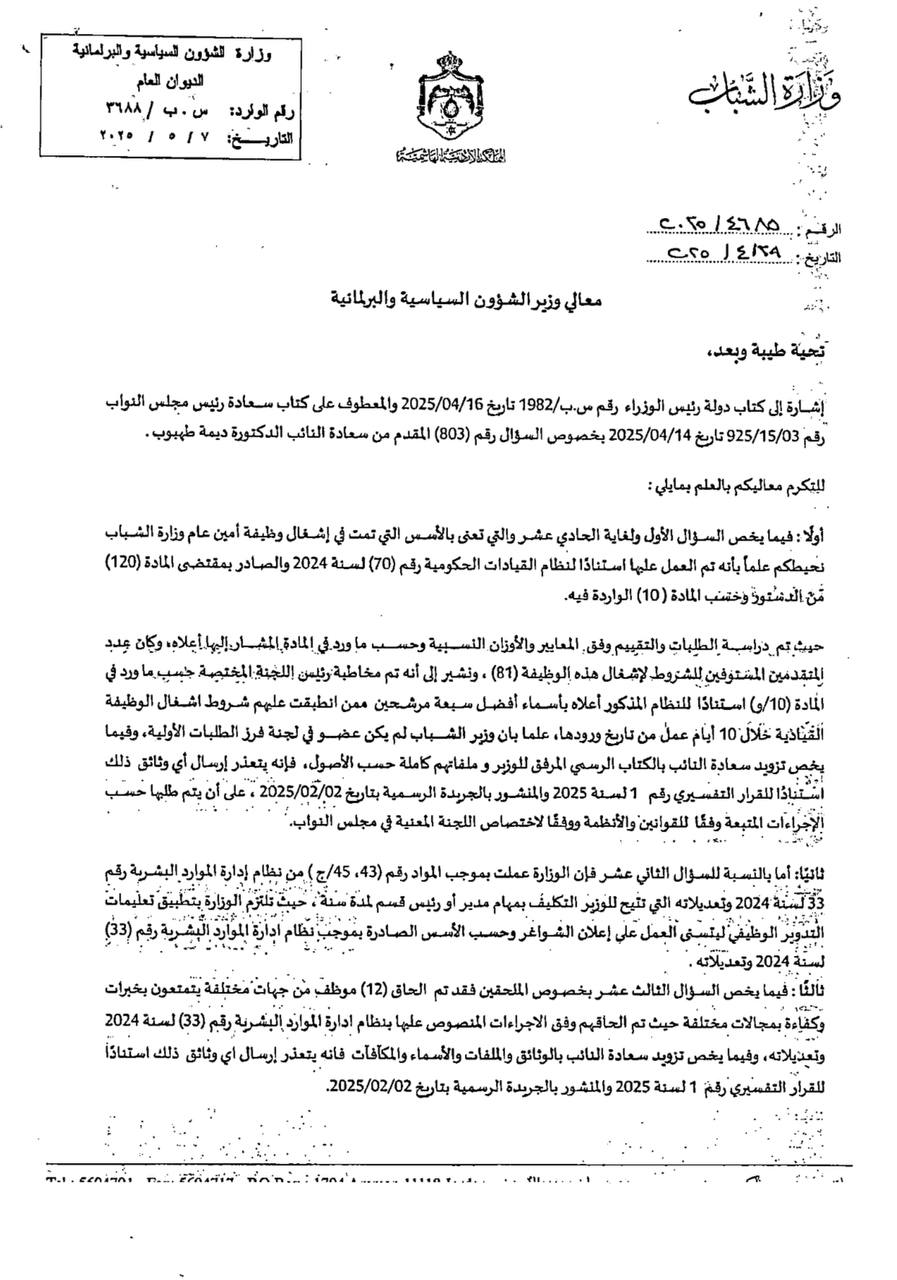 - رد وزير الشباب لا يواجه الأسئلة والملاحظات وتحدث بالعموميات وإجابته لا تسمن ولا تغني من جوع