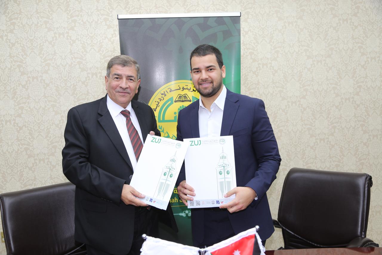 استقبل رئيس جامعة الزيتونة الأردنية، الأستاذ الدكتور محمد المجالي، اليوم في مكتبه، سمو الأمير نايف بن عاصم، رئيس الاتحاد الأردني للملاكمة، حيث جرى توقيع مذكرة تفاهم تهدف إلى تعزيز التعاون المشترك بين الجانبين وتطوير رياضة الملاكمة في المملكة.