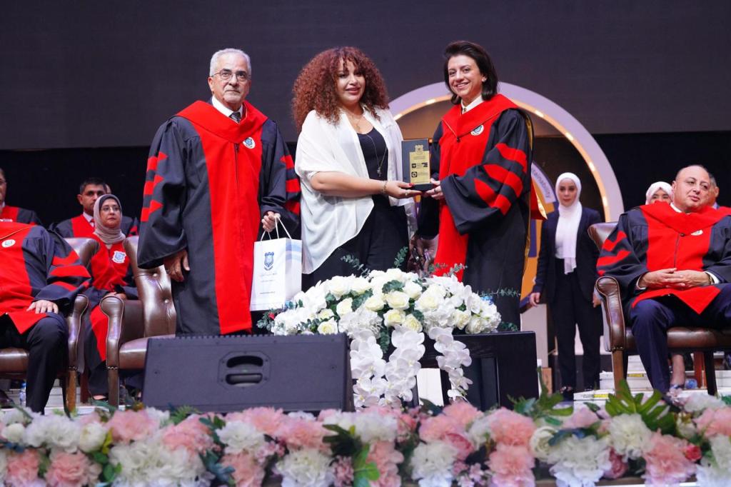 •وقامت راعية الحفل سمو الاميرة آية بنت فيصل والى جانبها رئيس الجامعة بتكريم خريجة الجامعة المخرجة المبدعة، مادونا حنا، من قسم التصميم السينمائي في كلية العمارة والتصميم ، التي واصلت مسيرتها الأكاديمية بالتحاقها بالمعهد العالي لفنون الطفل، وقُبلت ضمن أوائل الطلبة في برنامج ماجستير إخراج المسرح والسينما ، وتألقت بإخراج مسرحية "يافا والباب الأزرق"، التي فازت مع فرقتها بثلاث جوائز في مهرجان المسرح الدولي بالإسكندرية.