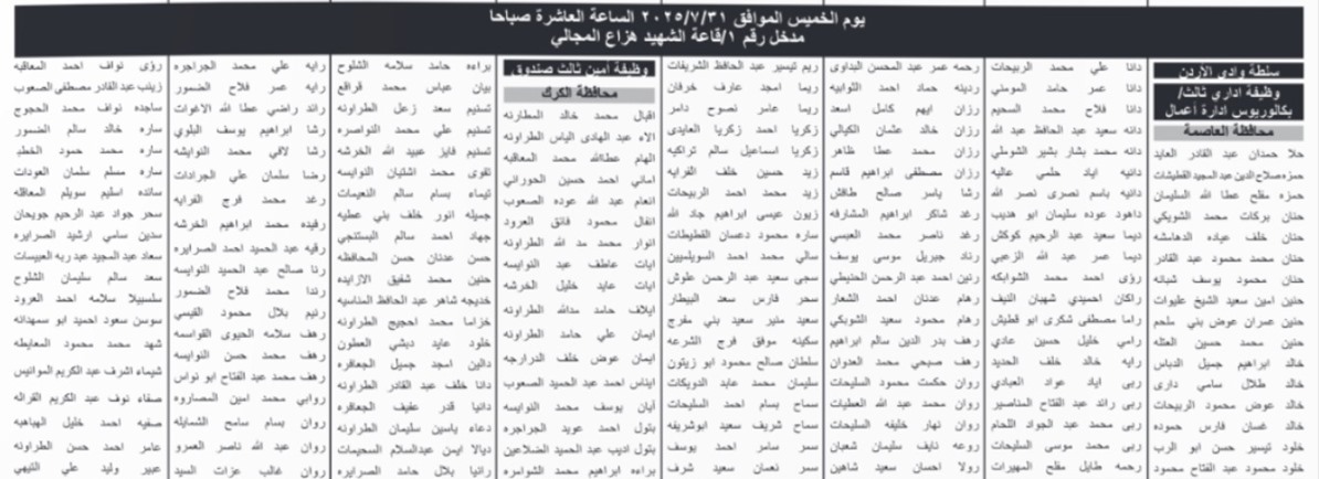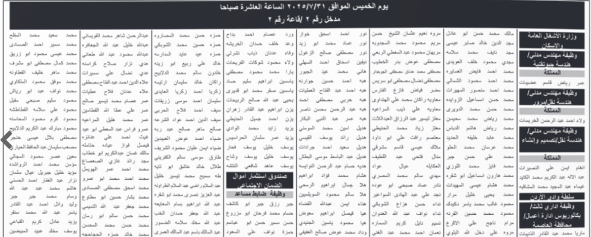 بالأسماء.. مئات الأردنيين مدعوون للامتحان التنافسي