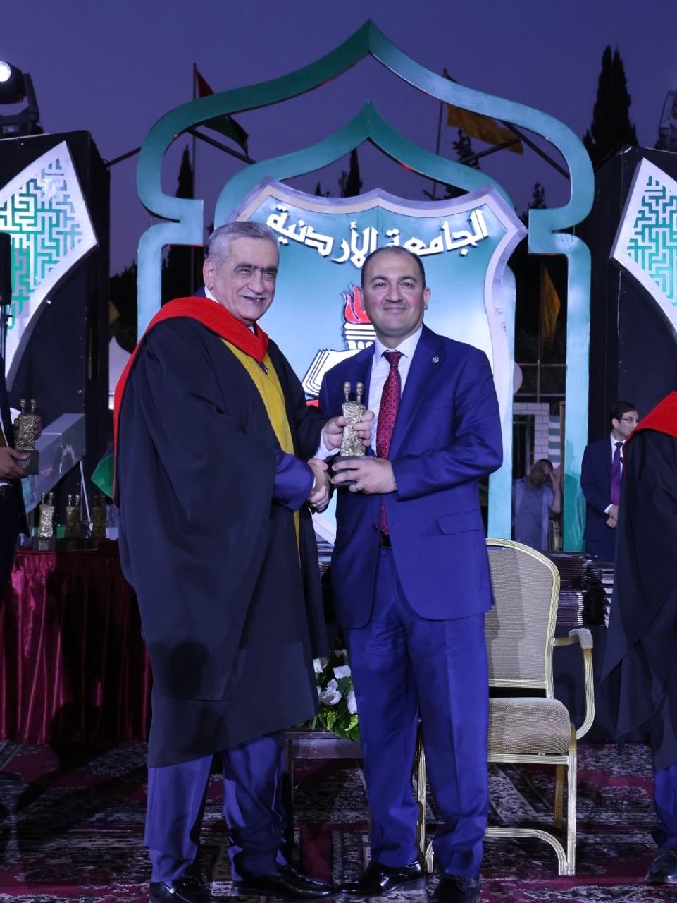 ويأتي قرار مجلس العمداء بمنحه الجائزة بناء على تنسيب لجان التحكيم المتخصصة استناداً إلى تعليمات جائزة الباحث المتميز في الجامعة الأردنية الصادرة عن مجلس العُمداء، حيث تسلم الجائزة من رئيس الجامعة الأردنية الدكتور نذير عبيدات في حفل اختتام تخريج طلبة الفوج الستين.