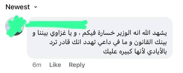 ولم تقتصر التهديدات فقط من ابن الشقيق لا بل أيضاً شقيق الوزير قام بالتهديد وبنشر رسالة عبر خاصية التعليقات في منصة فيس بوك، مضمونها "يشهد الله خسارة فيكم الوزير ويا غزاوي بيننا وبينك القانون ومافي داعي تهدد انك قادر ترد بالأيادي لأنها كبيرة عليك".
