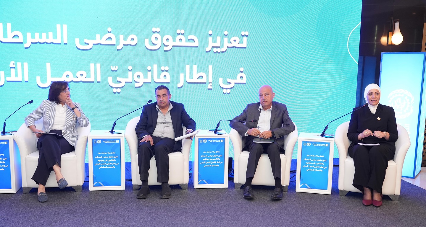 أطلقت مؤسسة الحسين للسرطان بالتعاون مع منظمة العمل الدولية، ورقة سياسات تهدف إلى تسليط الضوء على التحديات التي يواجهها مرضى السرطان والقائمون على رعايتهم فيما يتعلّق بالأمن الوظيفي، حيث تقدم الورقة توصيات عمليّة لتعزيز حقوقهم ضمن إطار قانونيّ العمل الأردني والضمان الاجتماعي، وذلك في جلسة حضرها كلّ من المديرة العامة لمؤسسة الحسين للسرطان نسرين قطامش، ، والرئيس التنفيذي لمركز الحسين للسرطان الدكتور عاصم منصور .