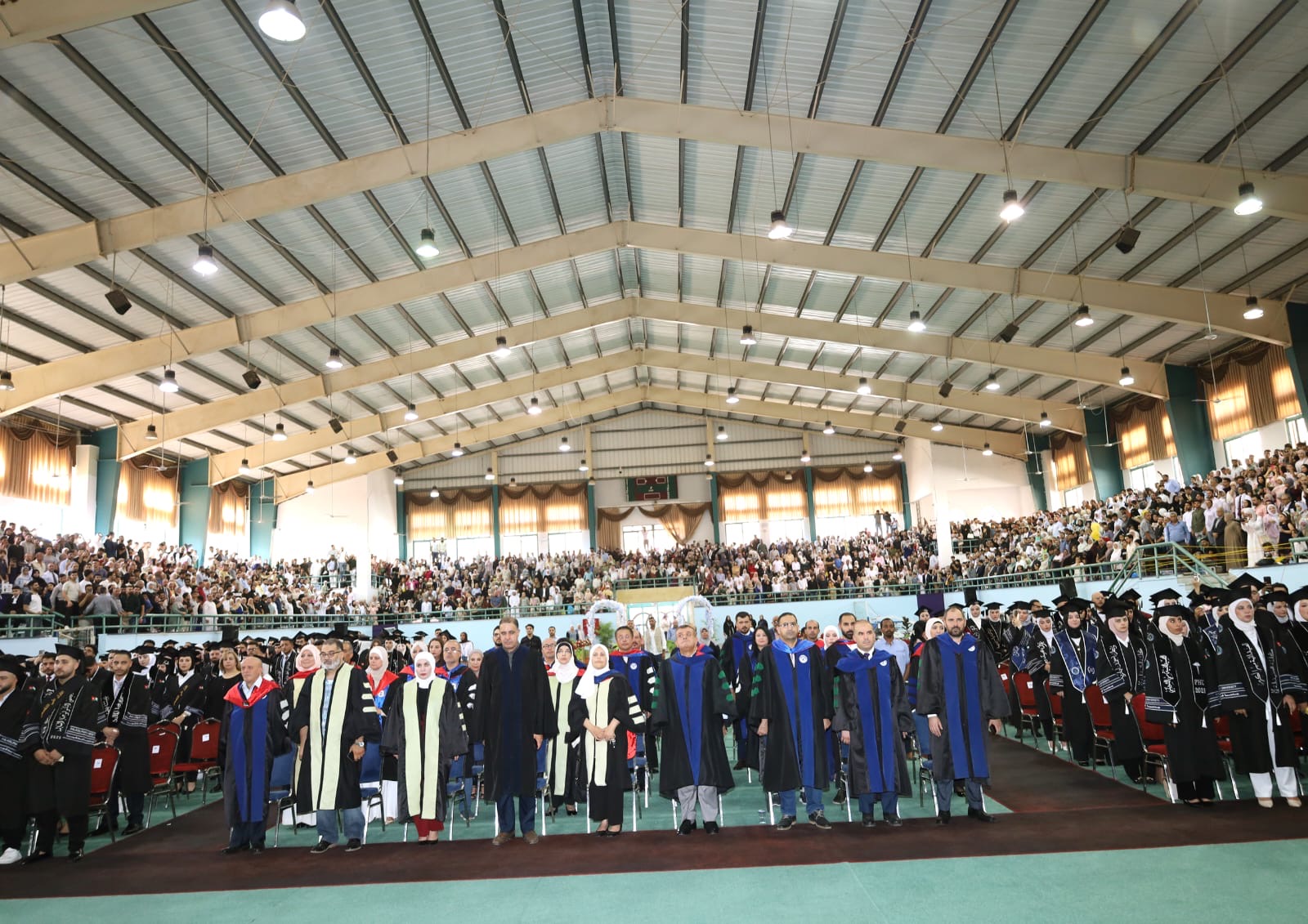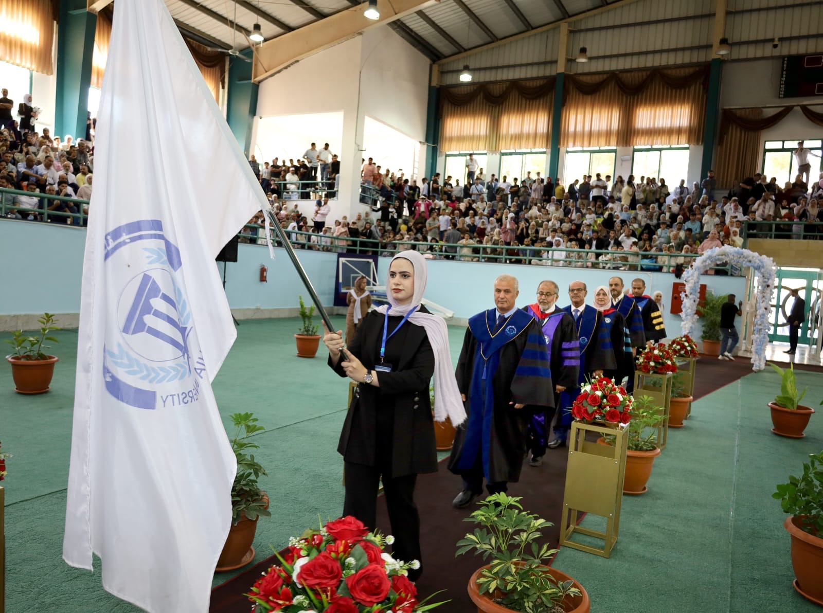 وهنّأ رئيس الجامعة الخريجين على ما حققوه من إنجاز جاء نتيجة جهدهم وإصرارهم، مؤكدًا أنهم اليوم يقفون على أعتاب مرحلة جديدة من حياتهم، يحملون معها الأمل والعزيمة لتحقيق النجاح في ميادين العمل، بروح من الصدق والإخلاص، وسعي دؤوب نحو تحقيق أهدافهم النبيلة، داعيًا إياهم إلى أن يكونوا خير ممثلين لجامعتهم في مواقعهم المستقبلية.