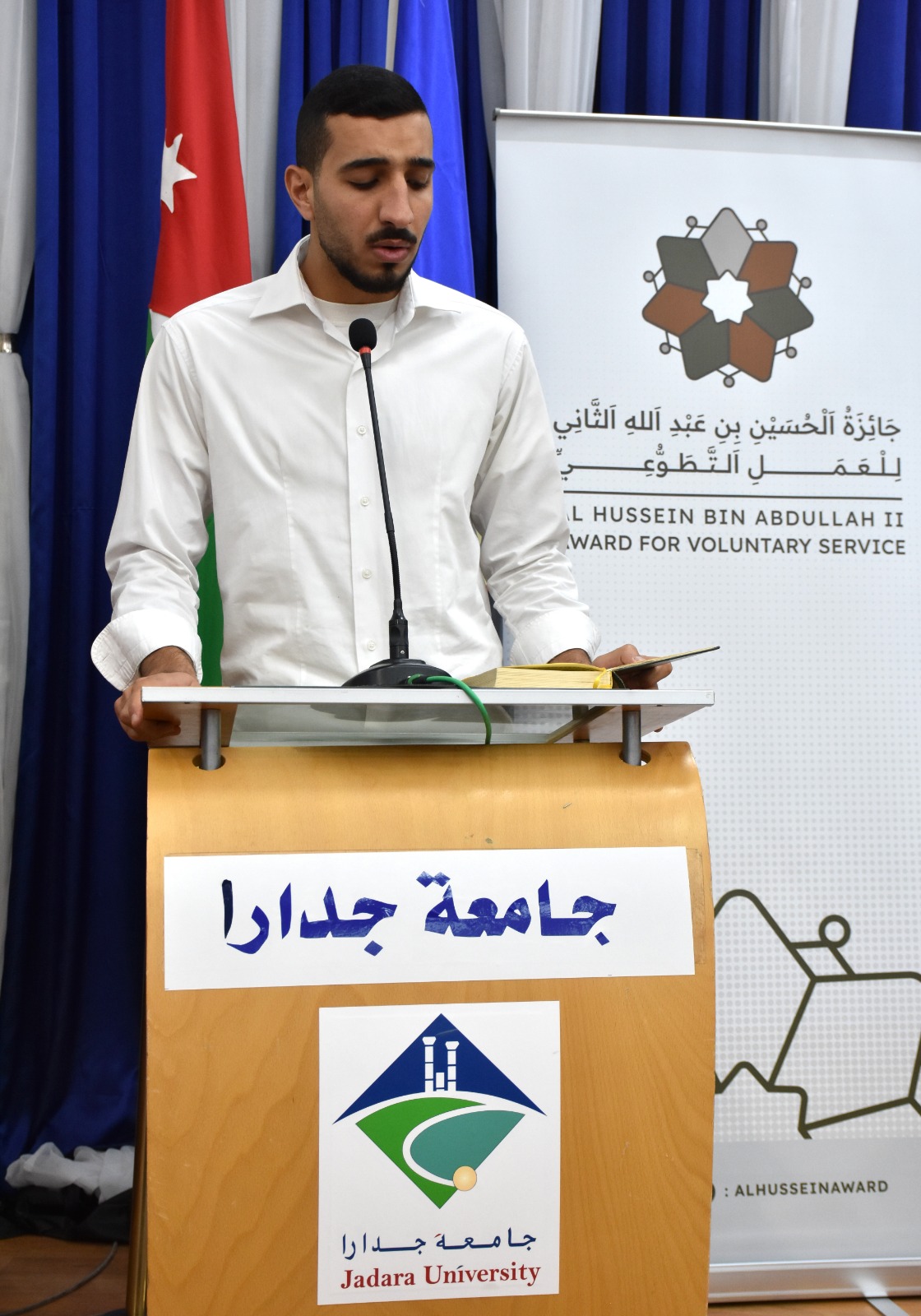 في إطار تعزيز ثقافة العمل التطوعي في البيئات التعليمية، نظمت عمادة شؤون الطلبة في جامعة جدارا، بالتعاون مع مؤسسة ولي العهد، جلسة تعريفية، اليوم الإثنين ٤ أغسطس 2025، لتسليط الضوء على جائزة سمو الأمير الحسين بن عبد الله الثاني للعمل التطوعي بدورتها الثالثة، وذلك بحضور عطوفة رئيس الجامعة الأستاذ الدكتور حابس الزبون ونائبه الأستاذة الدكتورة إيمان البشيتي.