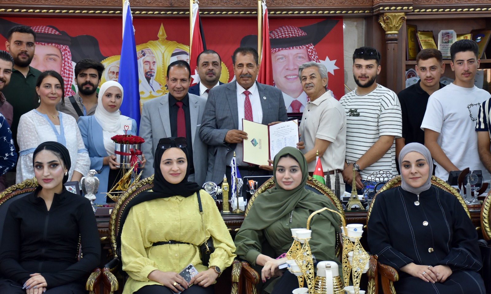 وقام الطلبة بتسليم الوثيقة موقعة من مئات الطلبة الى عطوفة الدكتور شكري المراشدة رئيس هيئة مديري جامعة جدارا – المدير العام ولعطوفة الأستاذ الدكتور حابس حتاملة الزبون رئيس الجامعة بحضور منسق الوثيقة الدكتور محمد العكش ، وسُلمت ايضاً باقة من الورود كتب عليها (شكراً جامعة جدارا) وتزينت الباقة بورود كل وردة فيها تمثل عام من عمر جامعة جدارا ليشكل عدد الورود عدد سنوات جامعة جدارا وهي تزهو في وطننا الغالي الاردن.