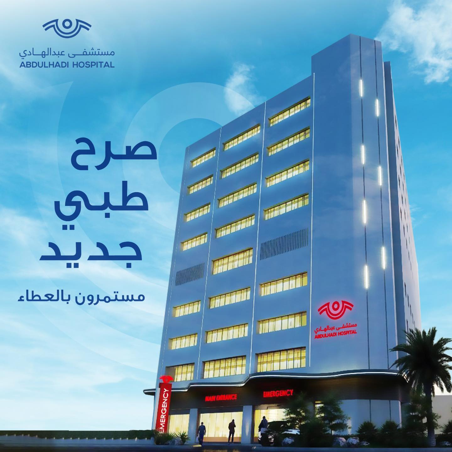 * مستشفى عبد الهادي ماركة مسجلة في شارع المستشفيات وعنوان في اول الصفحة وقبلة للباحثين عن العلاج والطبابة المتطورة