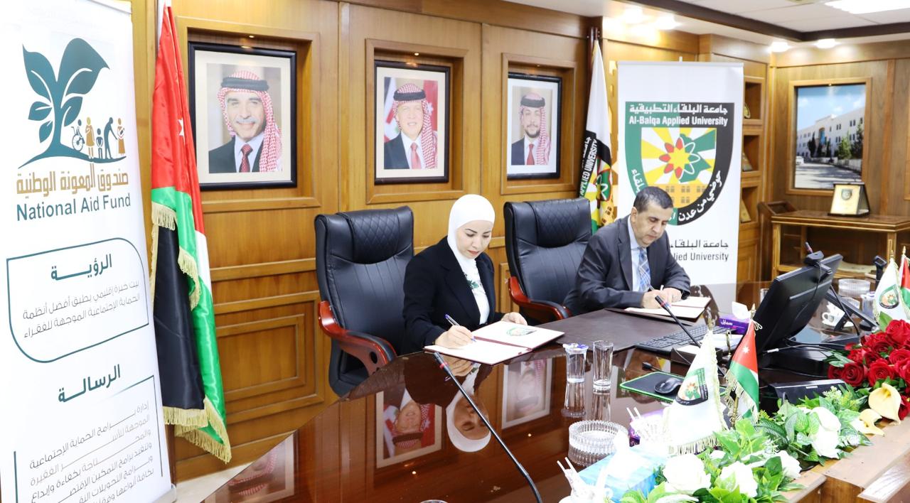 وقعت جامعة البلقاء التطبيقية وصندوق المعونة الوطنية اليوم اتفاقية تعاون إطارية تهدف إلى تنفيذ برامج تدريبية متخصصة لأبناء الأسر المنتفعة، بما يسهم في تمكينهم وفتح آفاق جديدة لهم في سوق العمل.