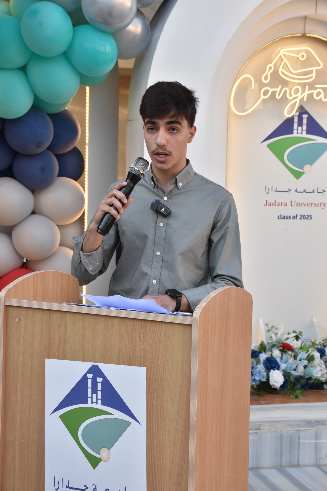 كما ألقت الدكتورة منال الإبراهيم، نائب رئيس هيئة المديرين في جامعة جدارا، كلمة عبّرت فيها عن اعتزازها بالطلبة وذويهم، وقالت:
