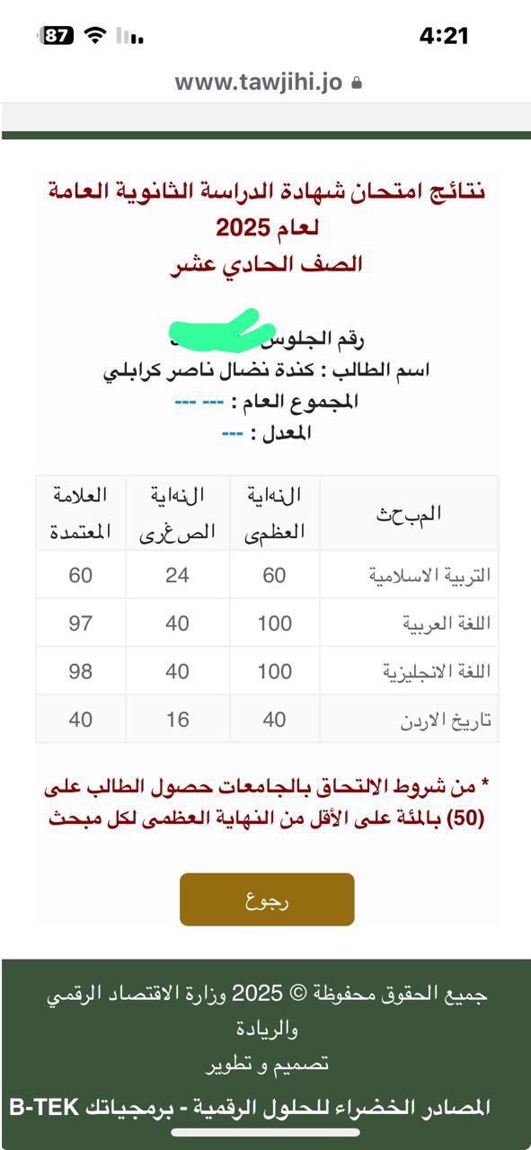 أخبار البلد - الأهل والأحبة يتقدمون بأحر التهاني والتبريكات للطالبة كندة نضال ناصر كرابلي بمناسبة نجاحها المتميز في امتحان شهادة الثانوية العامة للعام 2025، متمنين لها دوام التفوق والنجاح في مسيرتها الدراسية، وتحقيق أعلى المراتب في المستقبل.