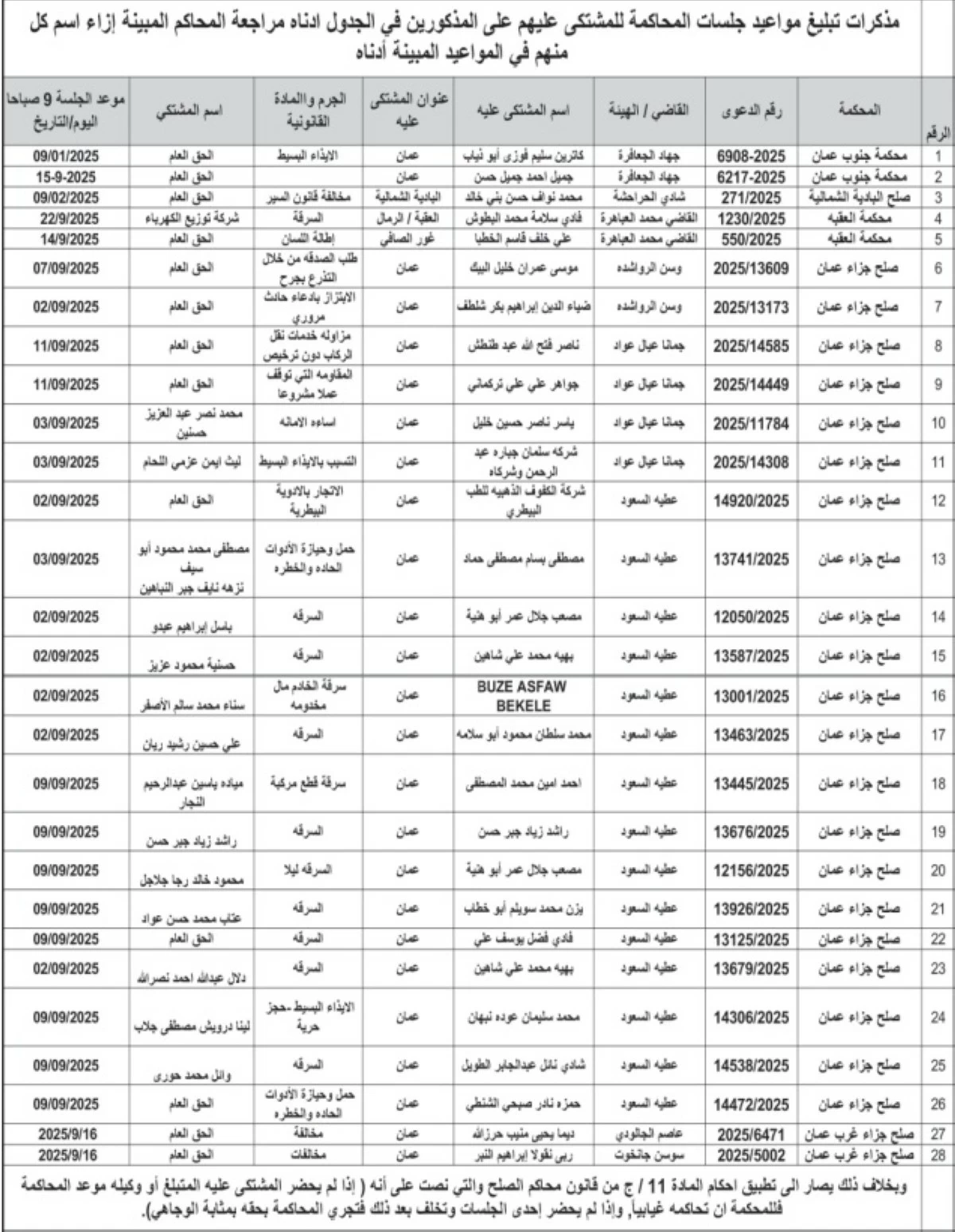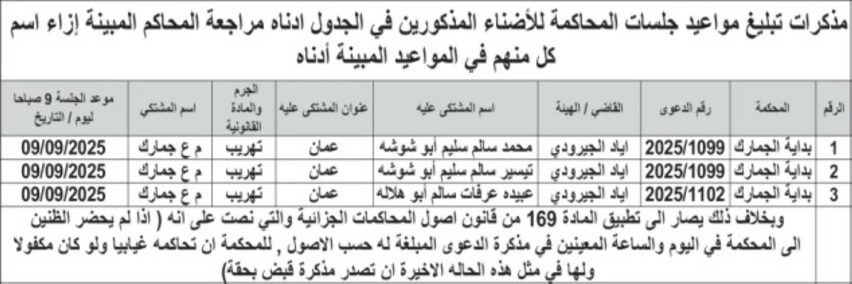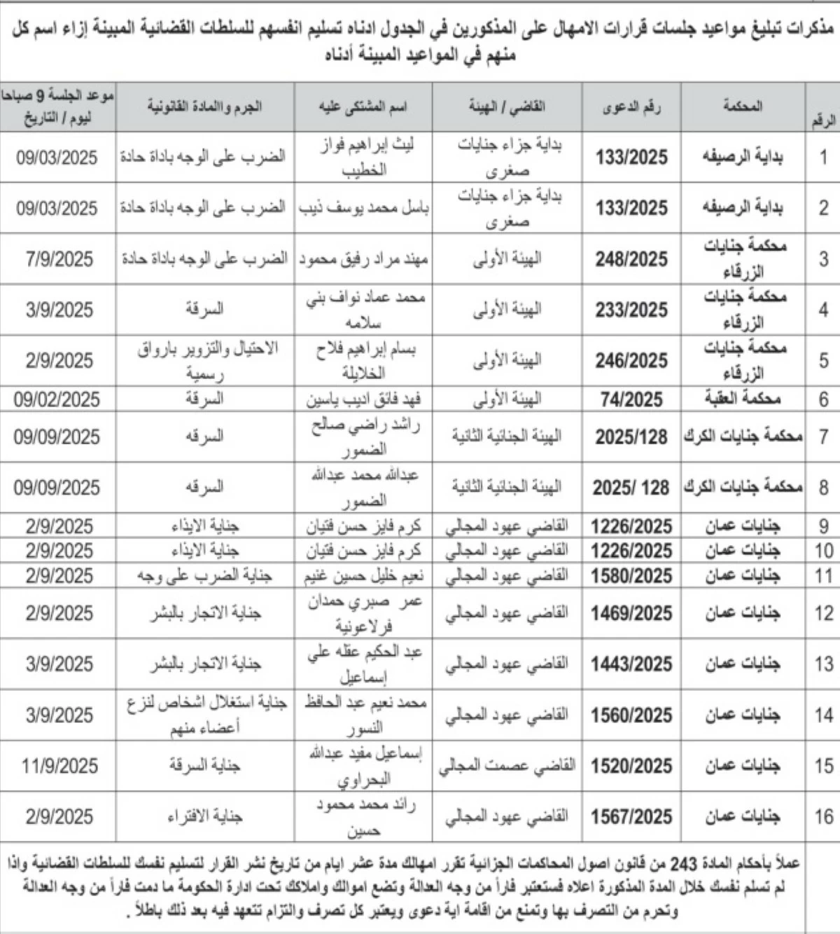 مذكرات تبليغ وقرارات امهال لأردنيين: راجعوا المحاكم - أسماء