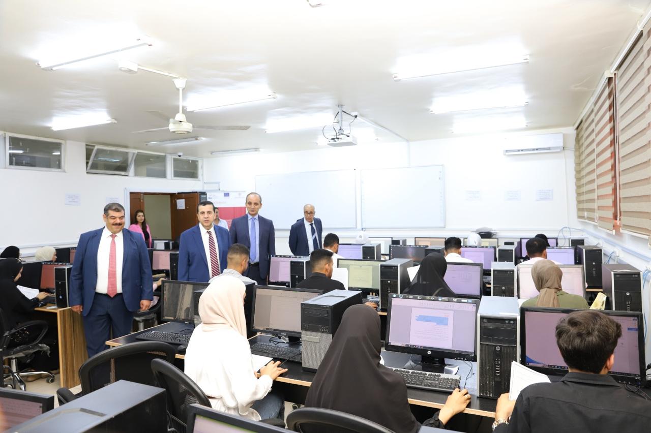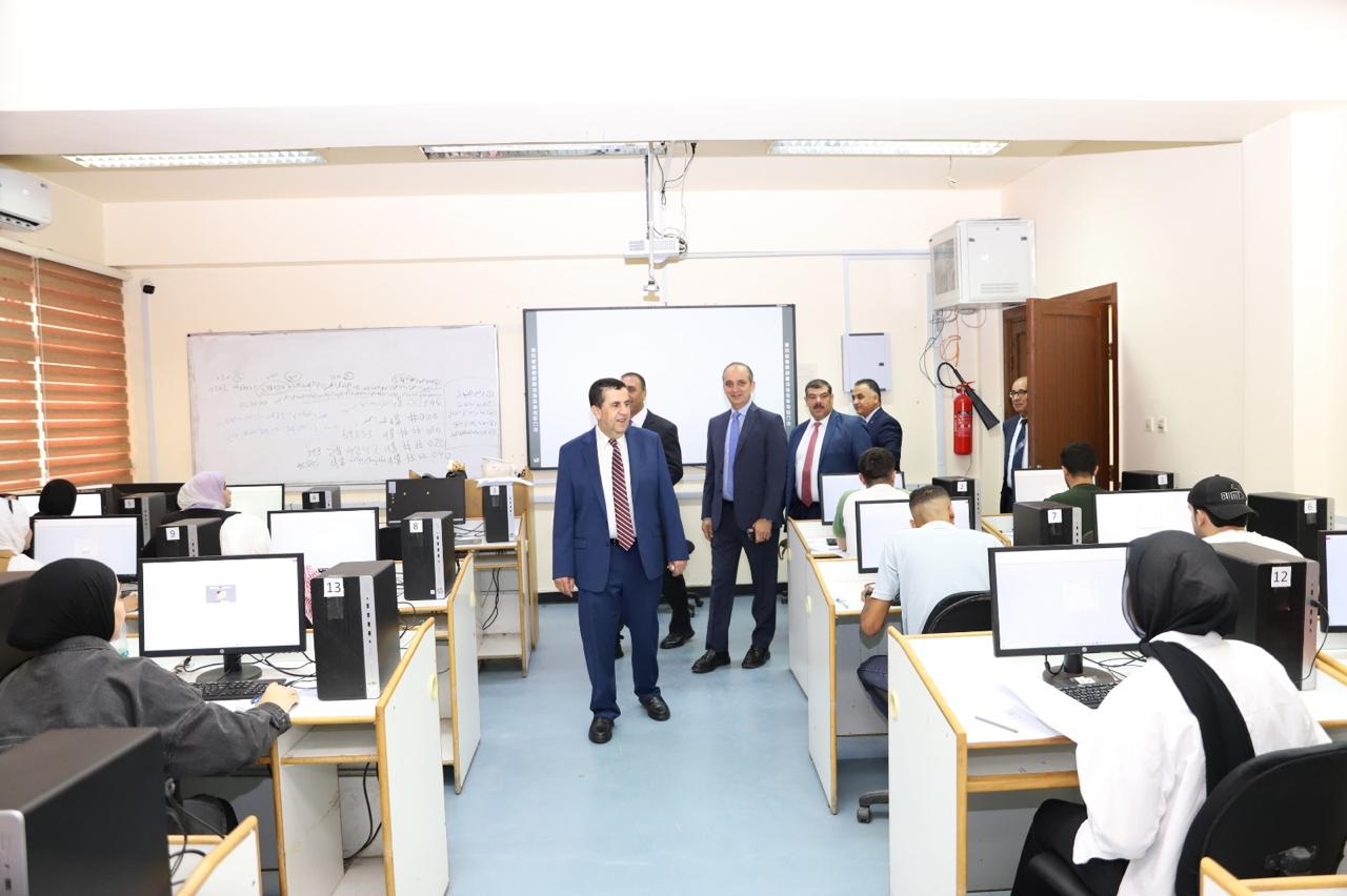 واطلع الدكتور العجلوني خلال الجولة على القاعات والمختبرات المعدة للامتحان، والإجراءات التنظيمية والفنية المعتمدة، كما استمع لملاحظات الطلبة والمراقبين حول مجريات الامتحان، مشدداً على أهمية تهيئة أجواء مريحة وعادلة تساعد الطلبة على أداء امتحانهم وإبراز إمكاناتهم.