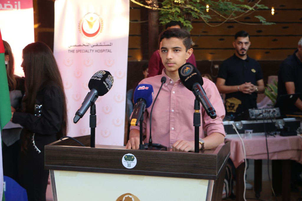 كما ألقى الأستاذ ( صفوان أديب الصفدي كلمة أولياء أمور الطلبة والد الطالبة (جود)( الأولى ) على الفرع ( العلمي ) من مدارس (الملك عبدالله الثاني للتميز) بمعدل (99.75%)، وقدمت الطالبة فرح غالب الفقيه كلمة الطلبه الاوائل، ( الاولى ) على الفرع (الأدبي) بمعدل (99.25%) من مدارس ( عين غزال الثانوية المختلطة).