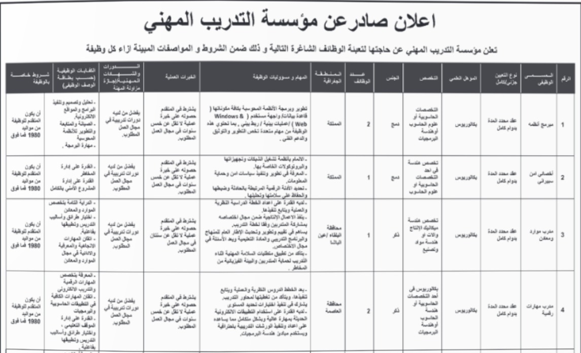 مؤسسات حكومية تعلن عن توفر وظائف شاغرة.