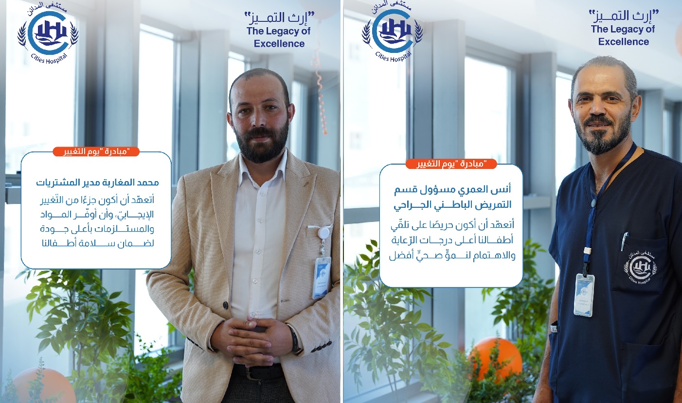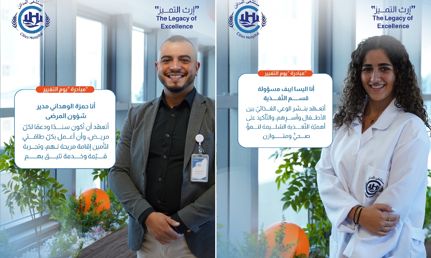 احتفلت الكوادر الصحية والادارية في مستشفى المدائن بيوم التغيير الذي اطلقه مجلس اعتماد المؤسسات الصحية والذي يهدف الى تحفيز العاملين في القطاع الصحي وتحسين جودة الرعاية الصحية المقدمة وتفعيل مبادئ سلامة المرضى وحقوقهم.