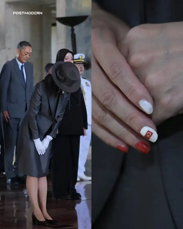 خطفت أصابع أميرة من العائلة الإمبراطورية اليابانية، الأنظار خلال زيارة رسمية لها إلى تركيا بعدما طلت أظافرها برسم وألوان العلم التركي.